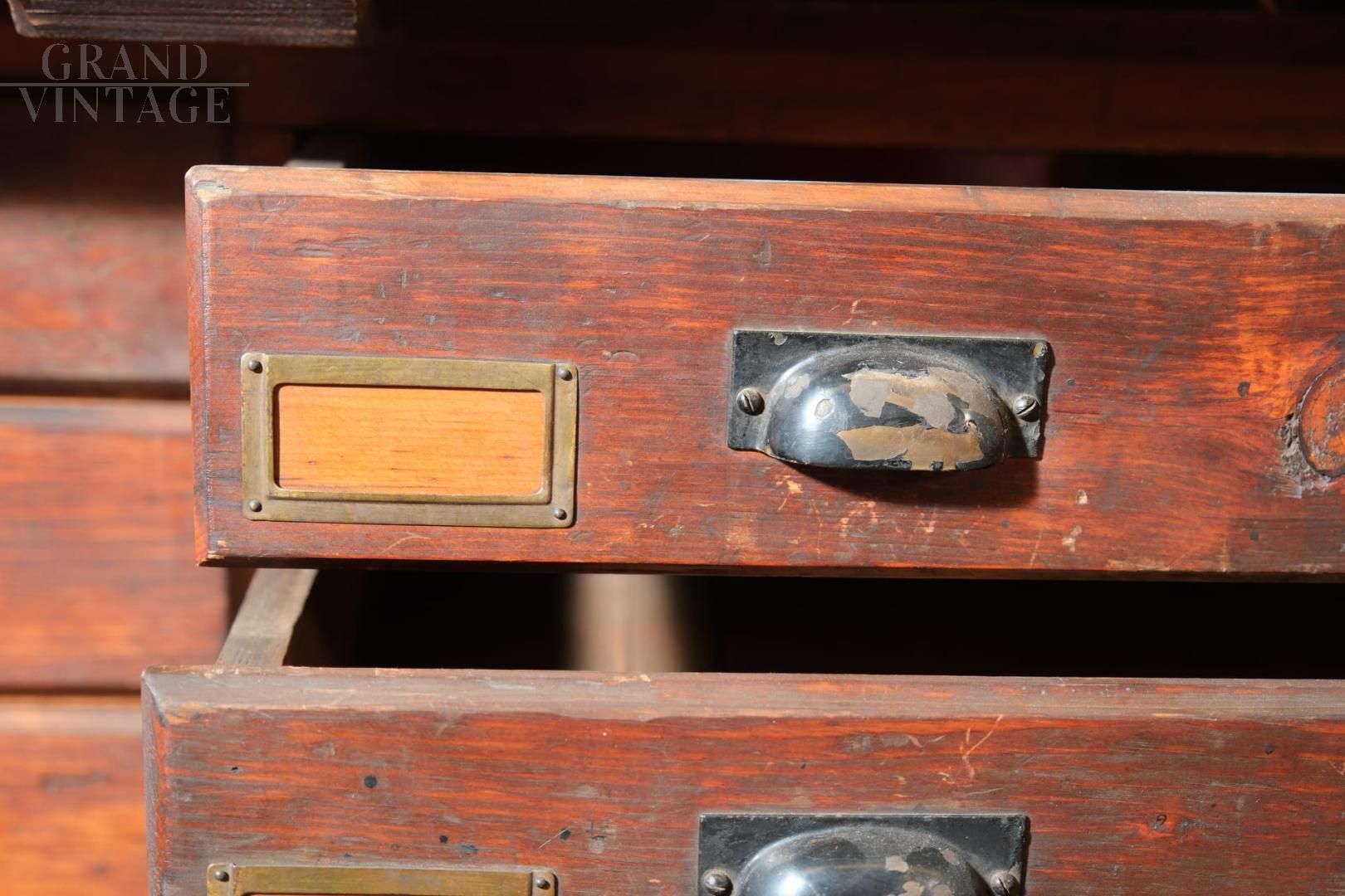 Massiccio e ricco di dettagli, questo bancone da tipografo è un elemento d’arredo dal fascino industriale unico, perfetto per organizzare oggetti di minuteria in un negozio dal gusto retrò. Al suo interno offre tanto spazio per riporre svariati oggetti.