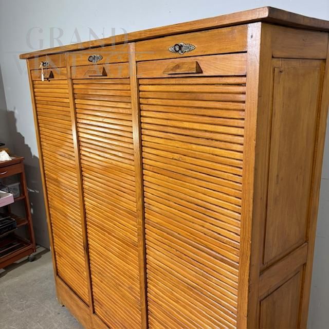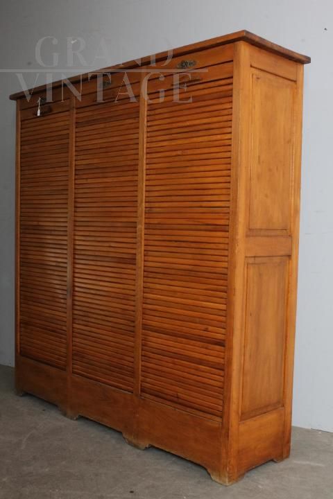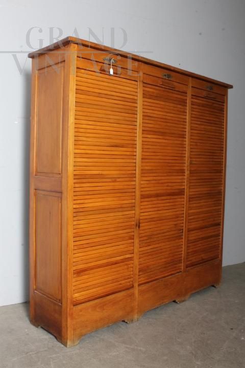 Mobile libreria da ufficio a tre serrandine in faggio massello, anni '50