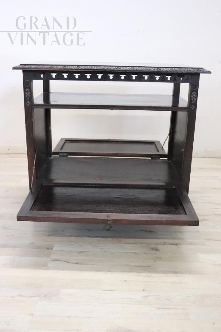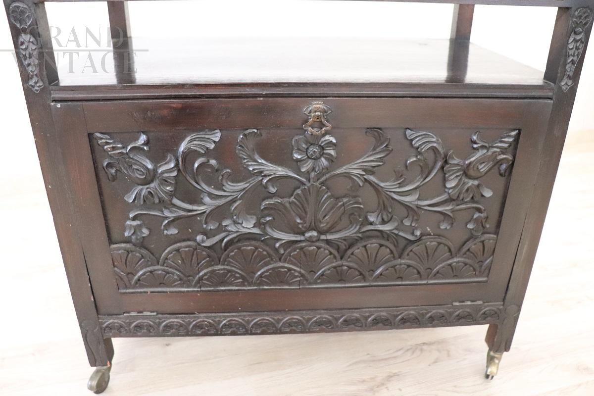 Mobiletto bar di epoca Liberty in faggio finemente intagliato