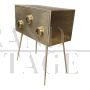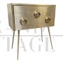 Mobiletto consolle in ottone con inserti circolari in vetro color ambra