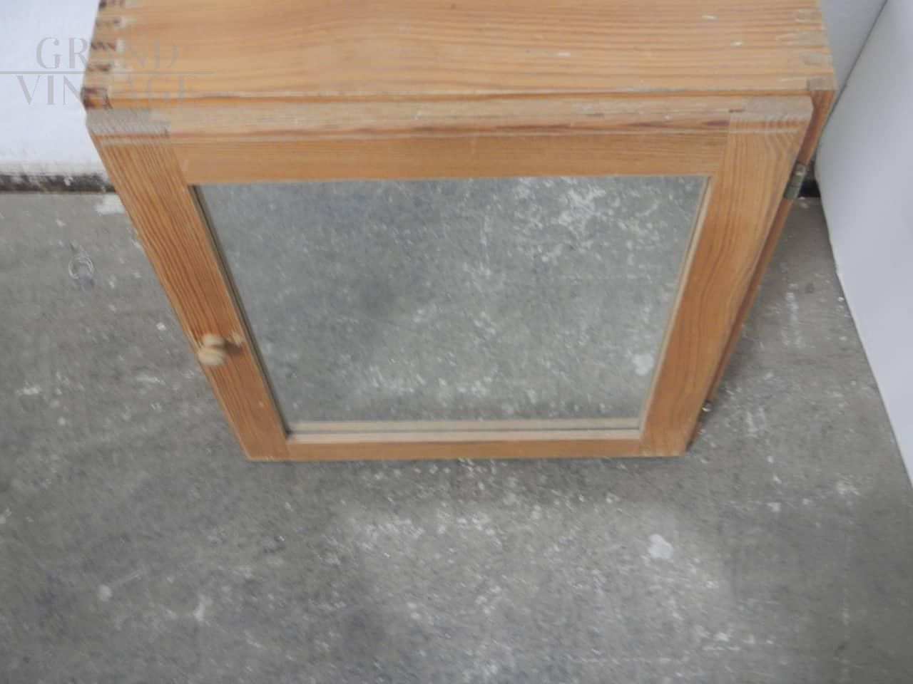 Mobiletto pensile da bagno vintage in abete con anta a specchio e con mensola interna, perfetto per un arredamento rustico.