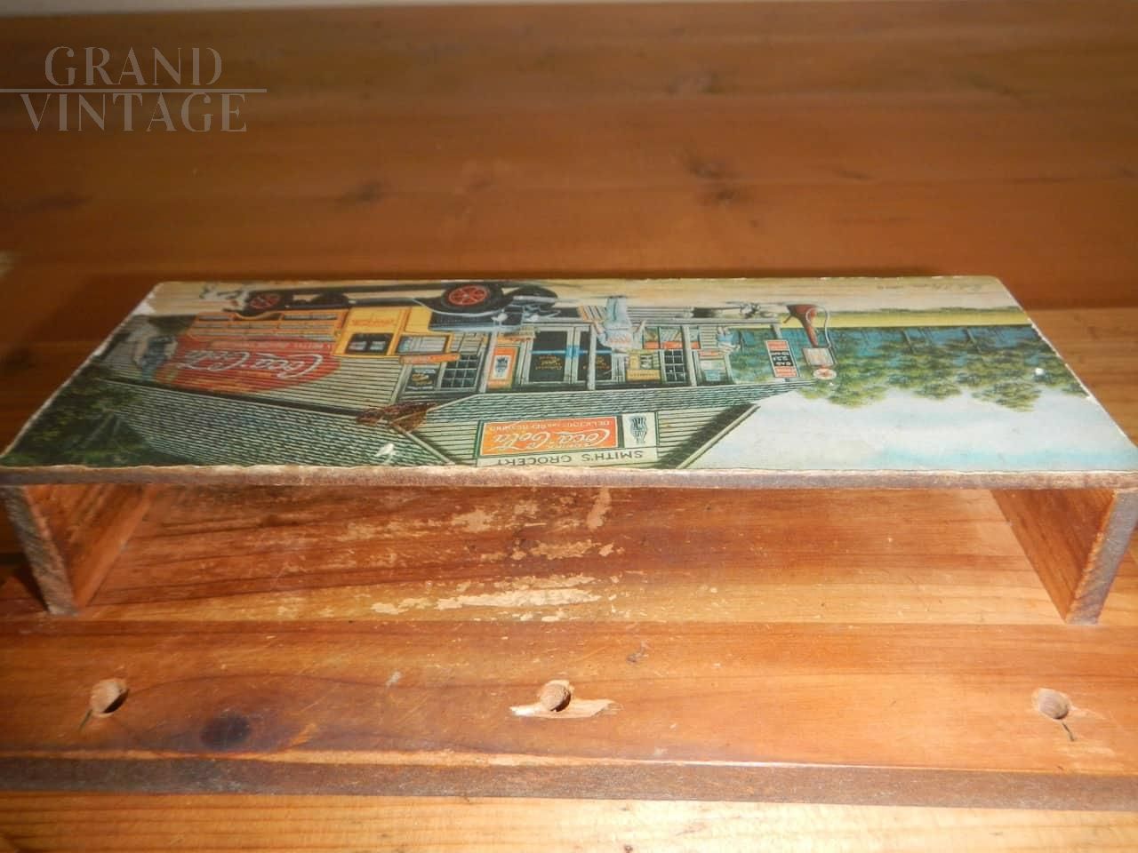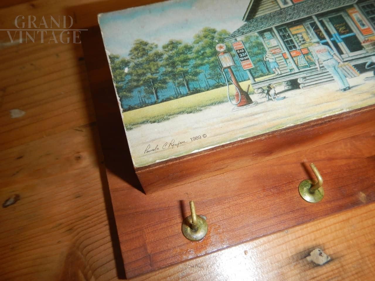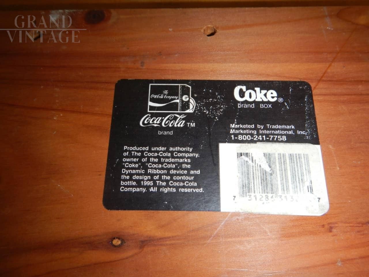 Mobiletto portachiavi Coca-Cola vintage in legno, con spampa originale firmata e datata 1989