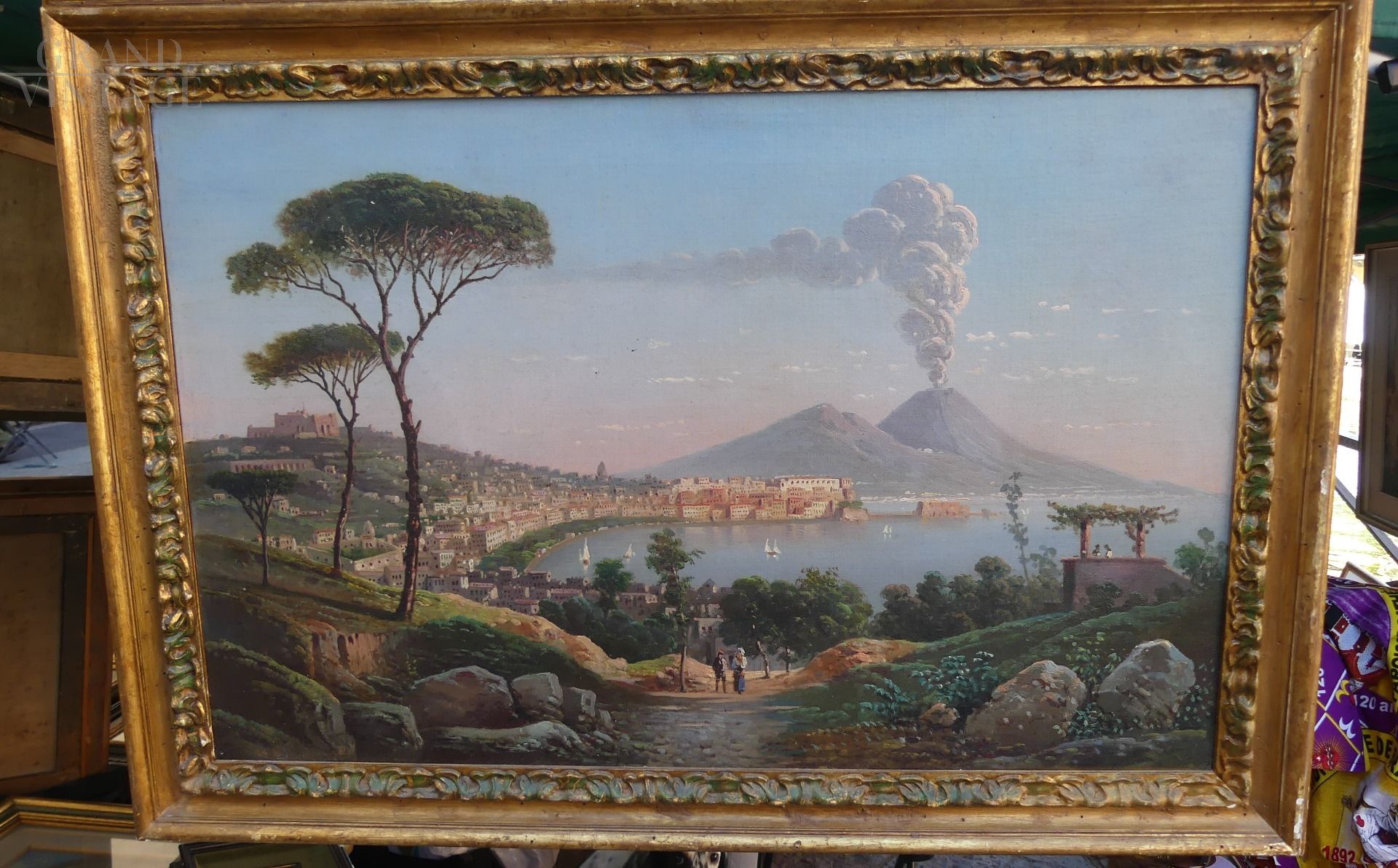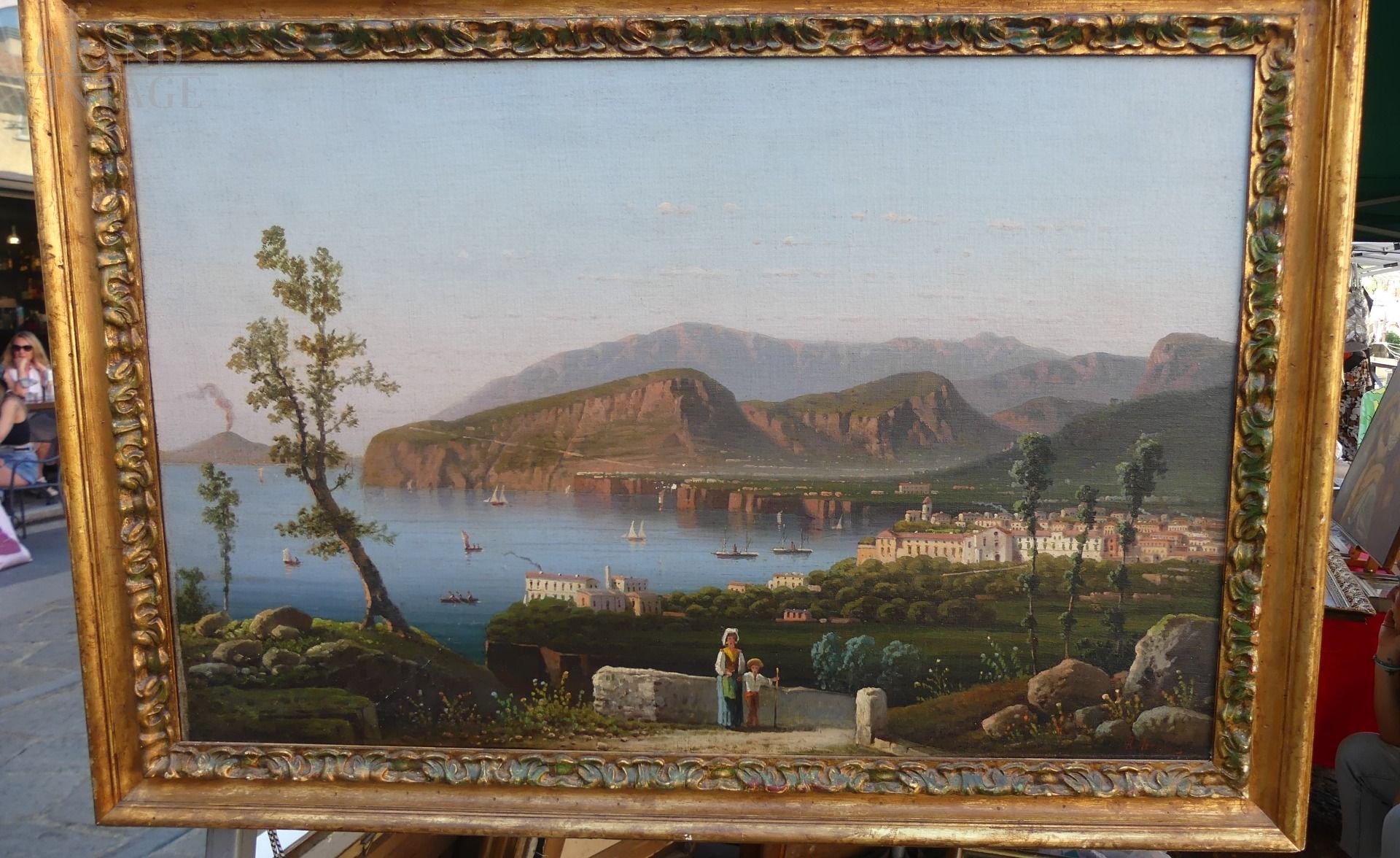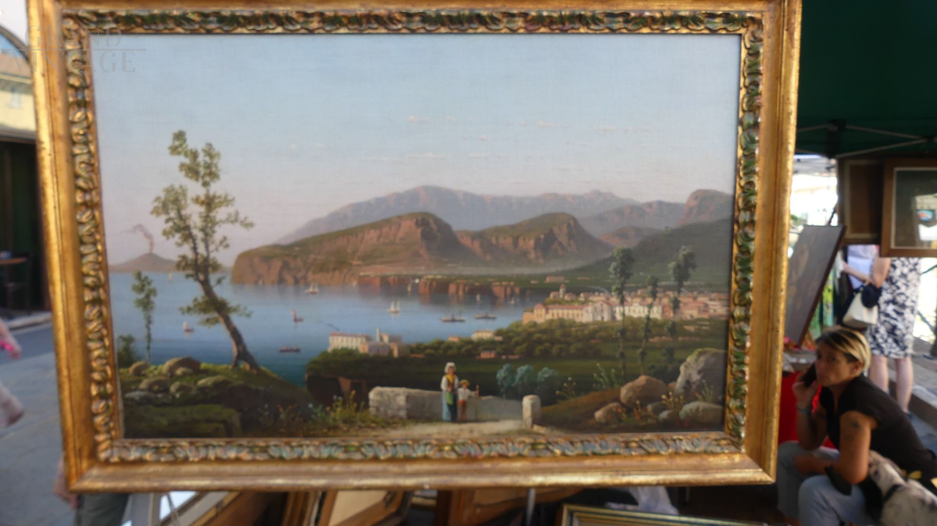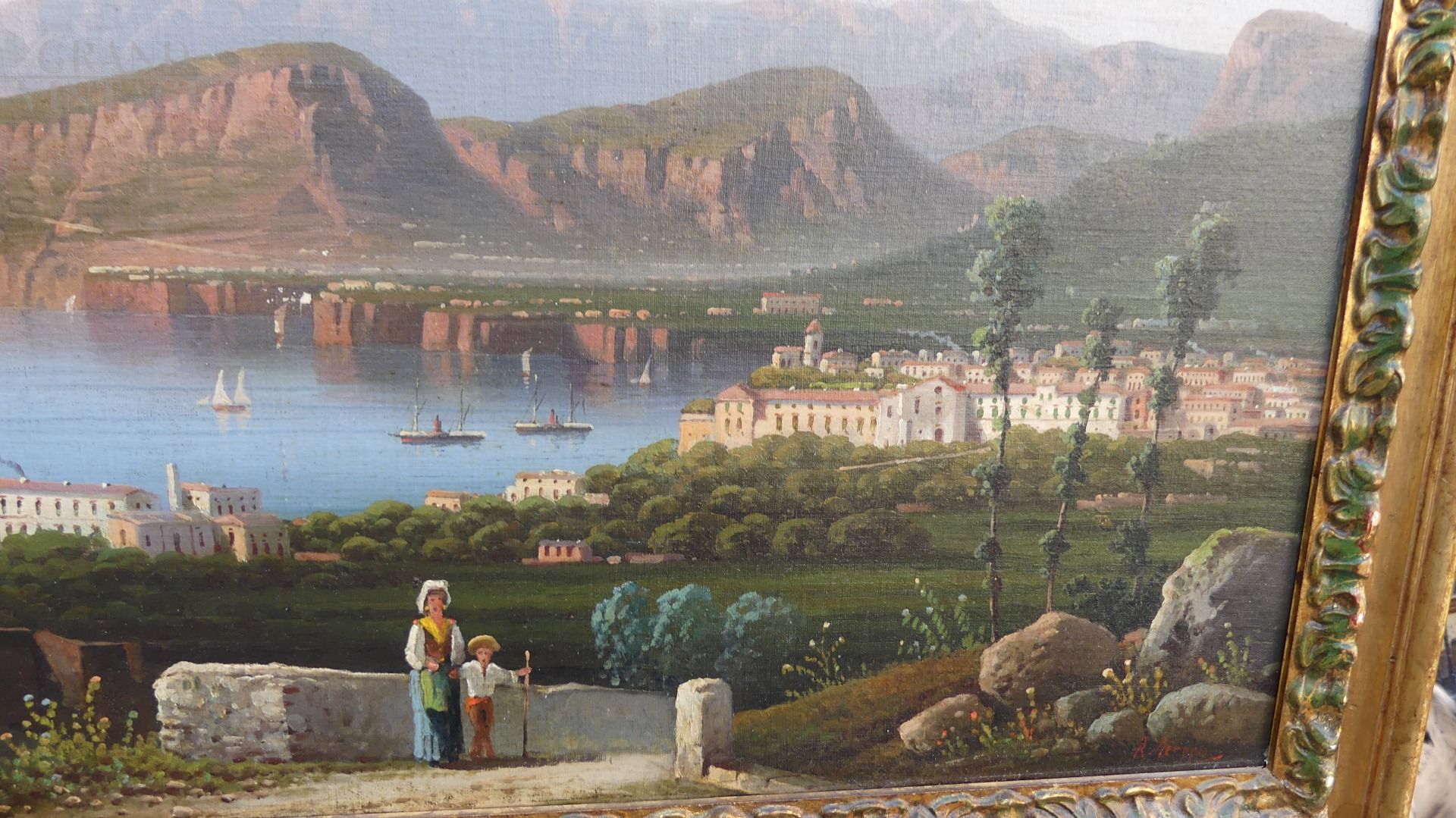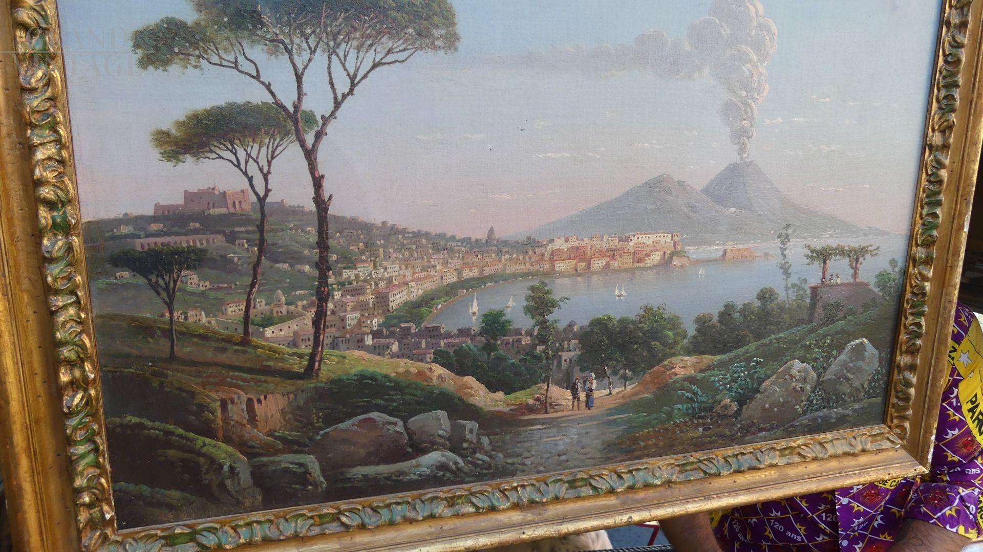 Coppia di dipinti di Raimondo Scoppa, fine '800, raffiguranti il golfo di Napoli e un panorama del Sorrento, olio su tela, recentemente intelaiati.
