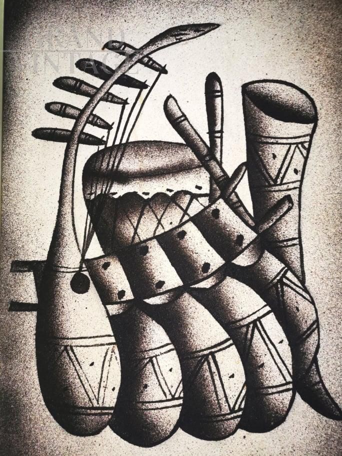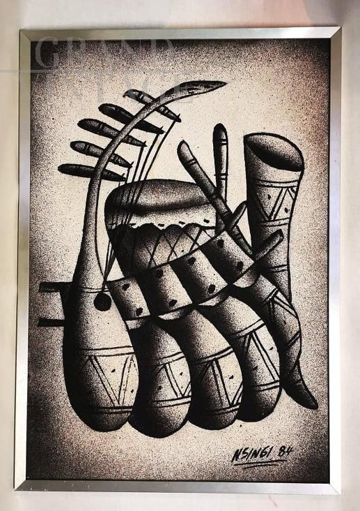 Nsingi - dipinto con strumenti musicali etnici, Zaire