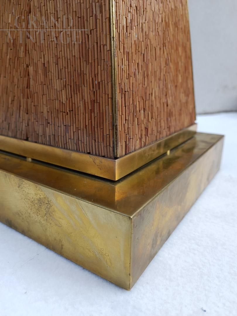 Obelisco vintage in midollino e metallo dorato firmato Tarzia, anni '60