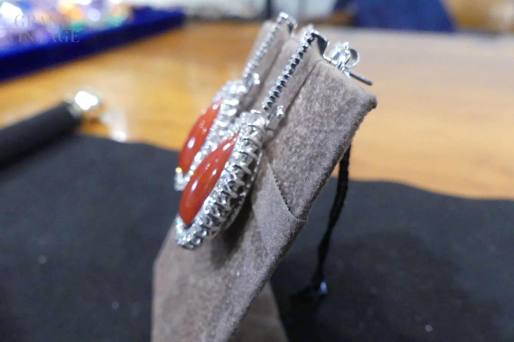Orecchini a goccia in oro bianco con diamanti e coralli