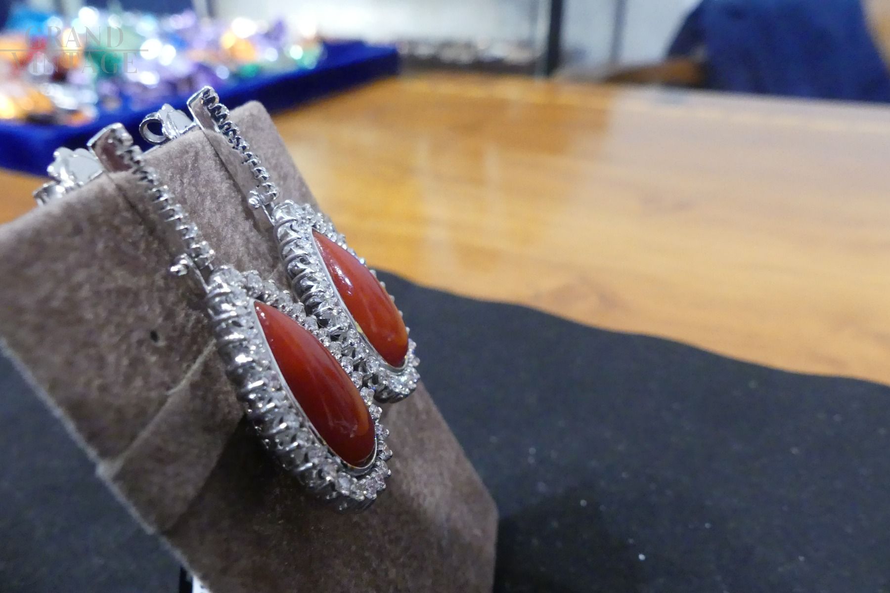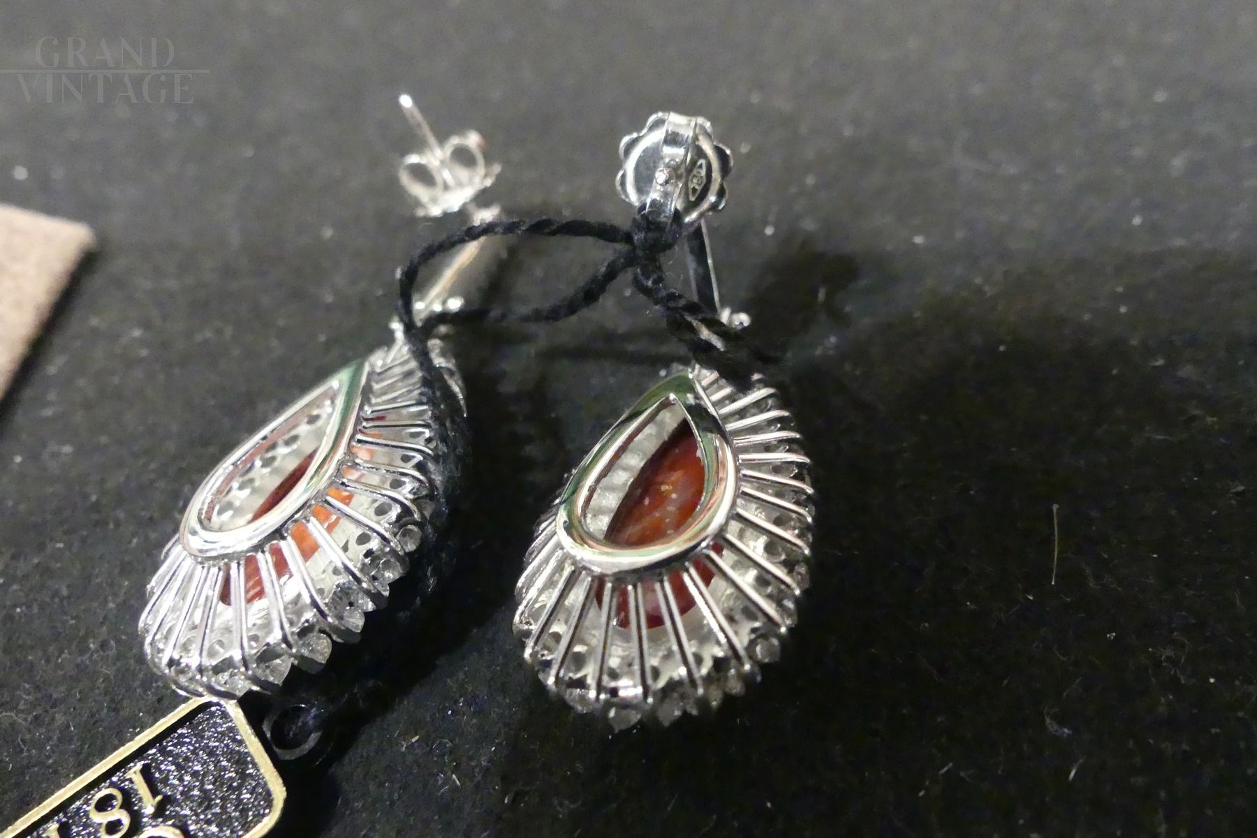 Orecchini a goccia in oro bianco con diamanti e corallo rosso AKA