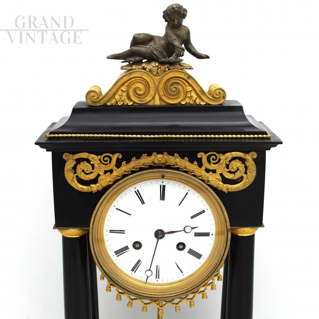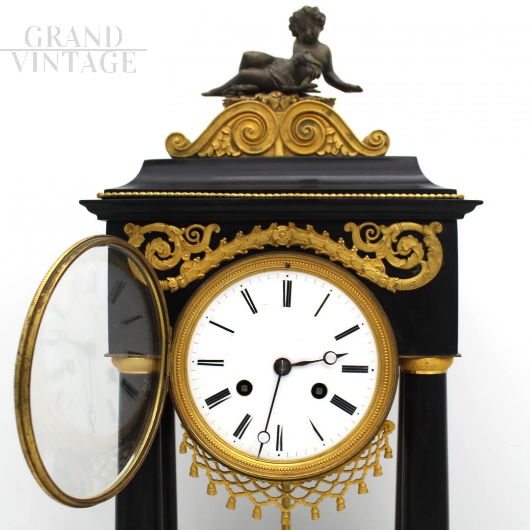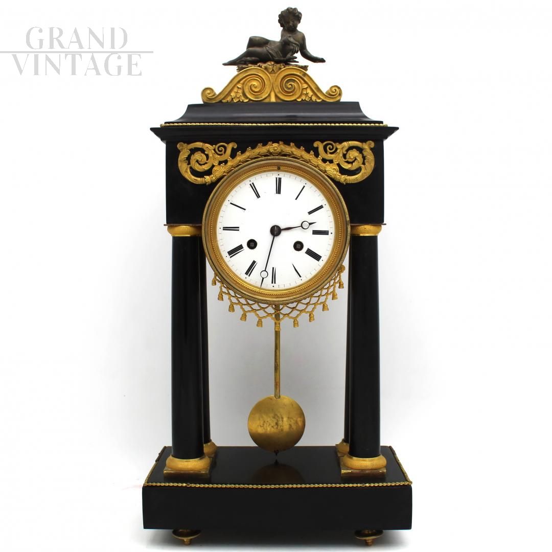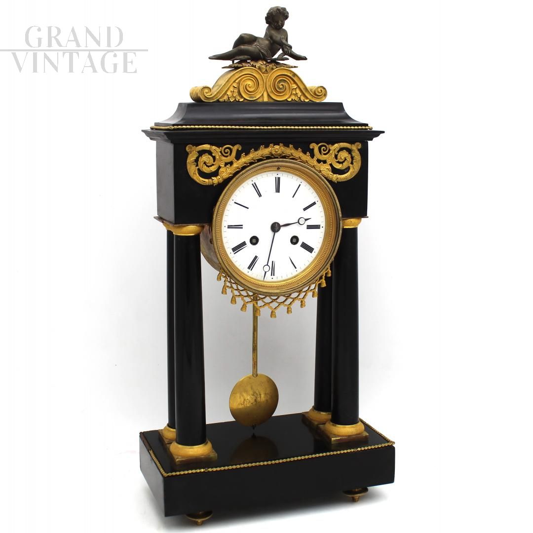 Orologio antico a pendolo epoca Direttorio in bronzo dorato e marmo, 1700