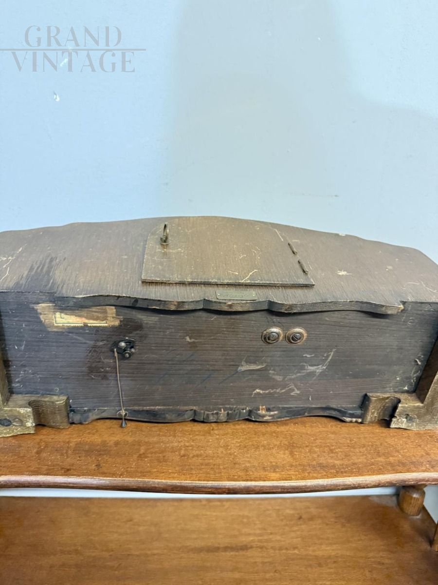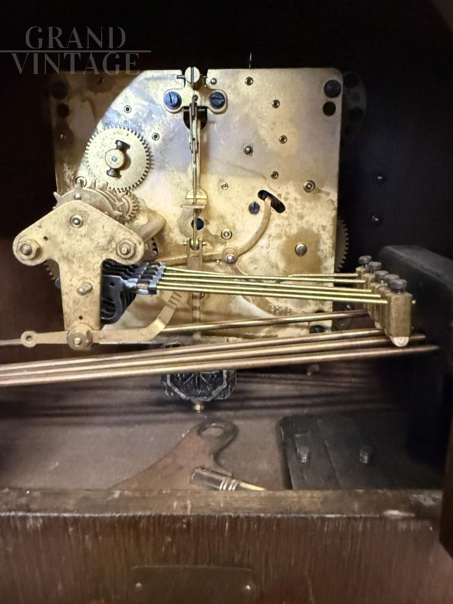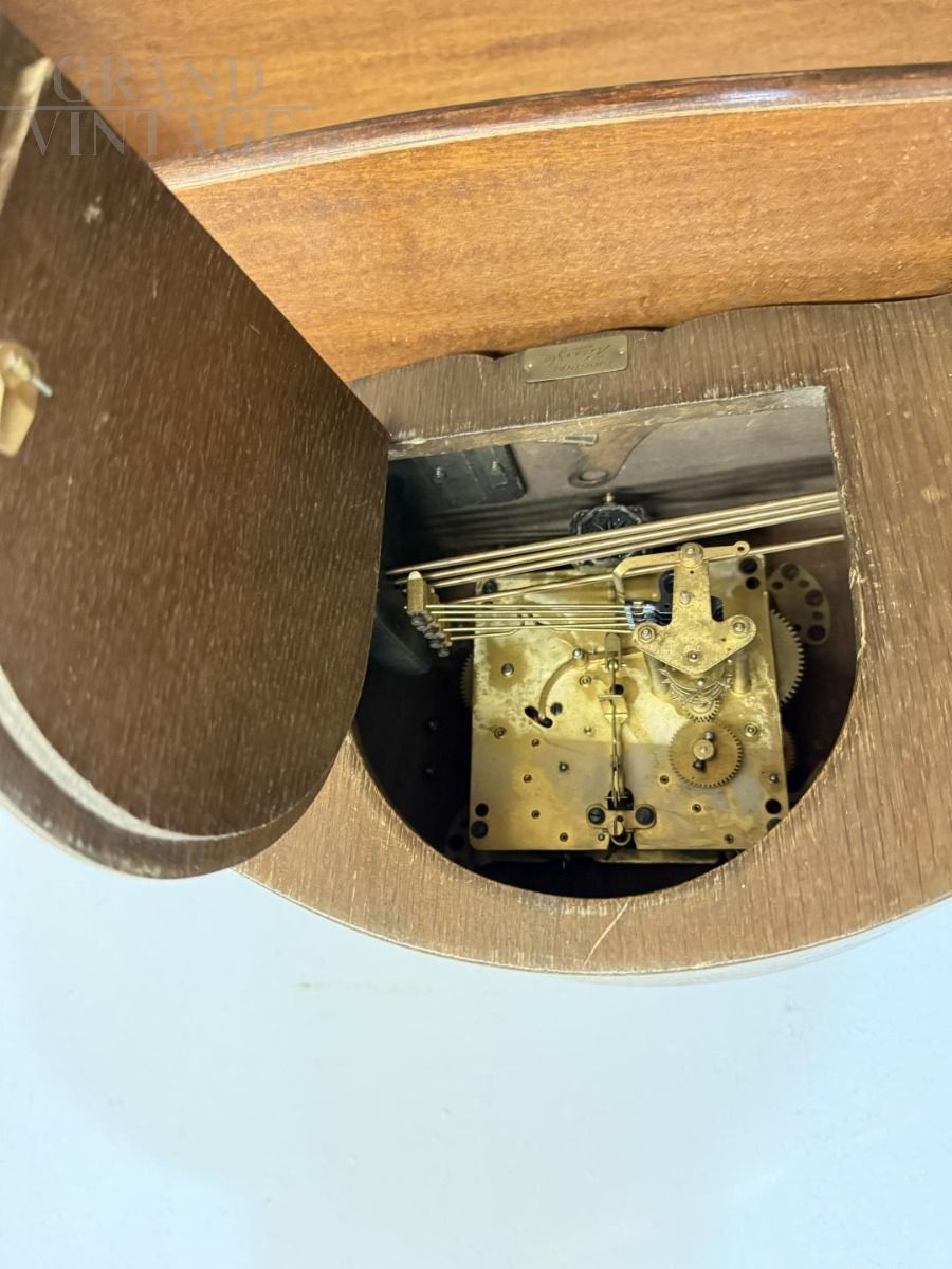 Orologio da camino o da tavolo Kienzle, periodo Art Déco anni '30, in legno di rovere e radica di rovere, il meccanismo sonoro è da revisionare.