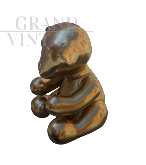 Orsacchiotto mascotte di Gucci in vetroresina di colore dorato, collezione bimbo anni '80 / '90. Per i veri collezionisti del grande marchio Gucci.