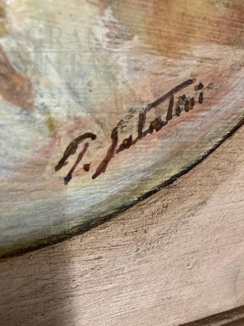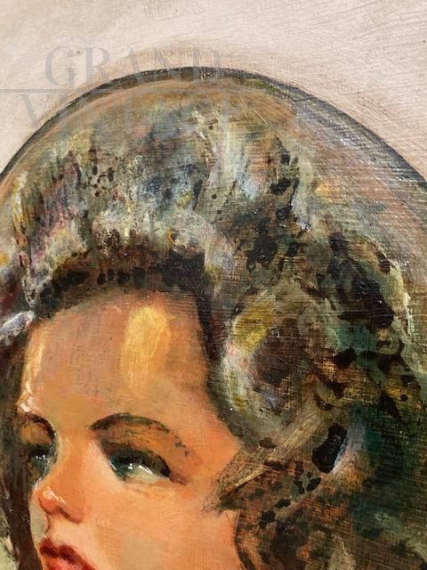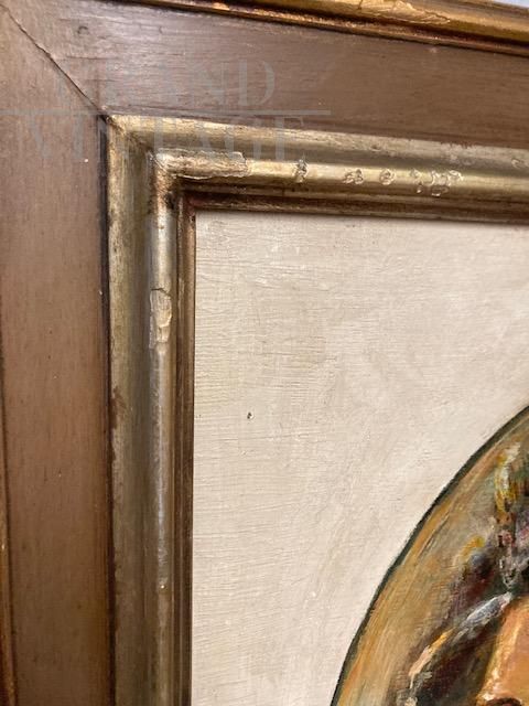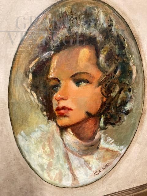 P. Salatini - dipinto con volto di donna, olio su cartoncino in cornice laccata