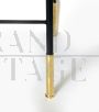 Particolari panche vintage design modernariato da interno con struttura interamente in ferro nero, piedini in ottone e rivestimento in tessuto verde, Italia anni '70.