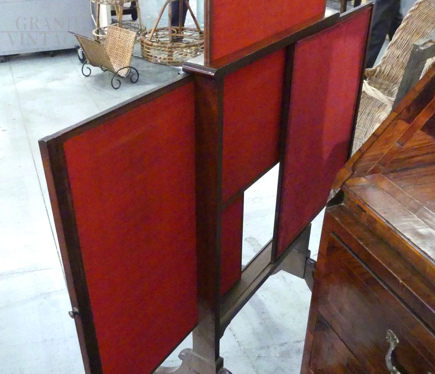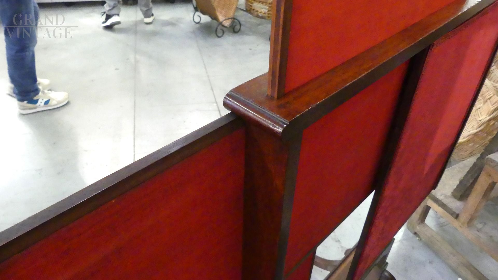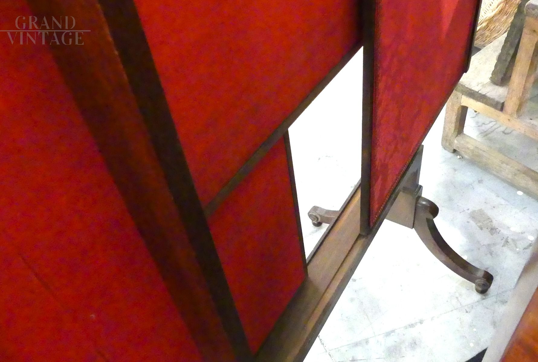 Paracamino antico dell'800, con struttura allargabile a più ali in legno e pregevole stoffa rossa.