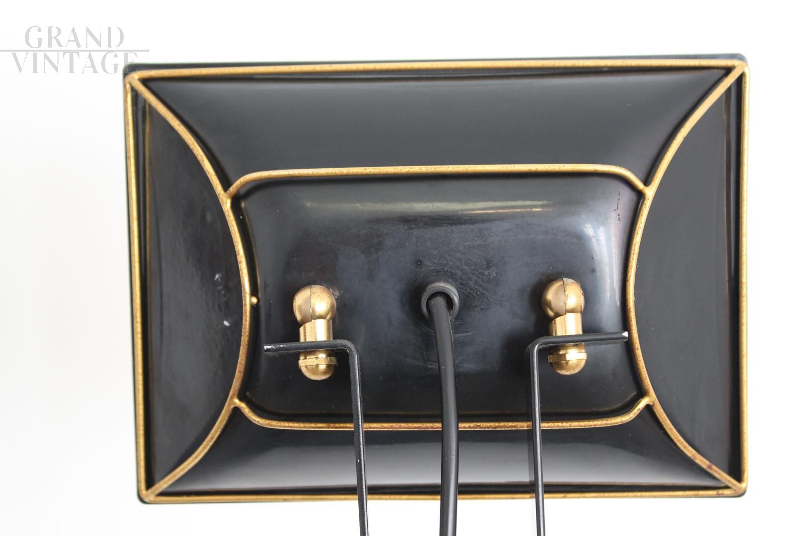 Piantana alogena vintage firmata Relux Milano, Italia anni '70, particolare design in metallo laccato nero con raffinati dettagli in ottone.