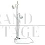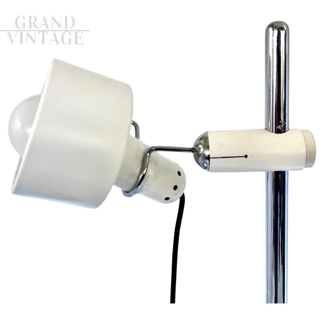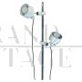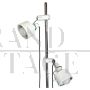 Piantana vintage design di Elio Martinelli per Martinelli Luce in acciaio cromato con due punti luce a faretto regolabili in metallo laccato bianco, modernariato italiano anni '70.