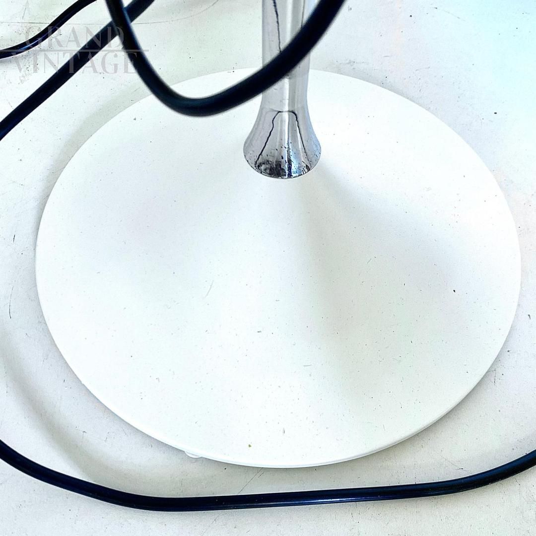 Struttura minimalista in metallo bianco e cromato con due faretti regolabili e flessibili. Inoltre, ogni lampada può essere accesa in modo indipendente. Finitura satinata bianca con asta in acciaio cromato. Revisionata e rifinita , perfettamente funzionante, in ottime condizioni con pochissimi naturali segni del tempo.