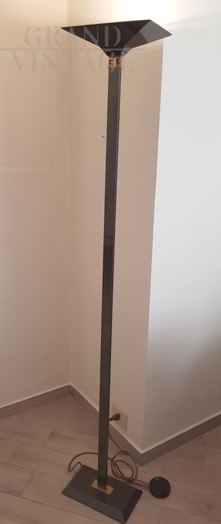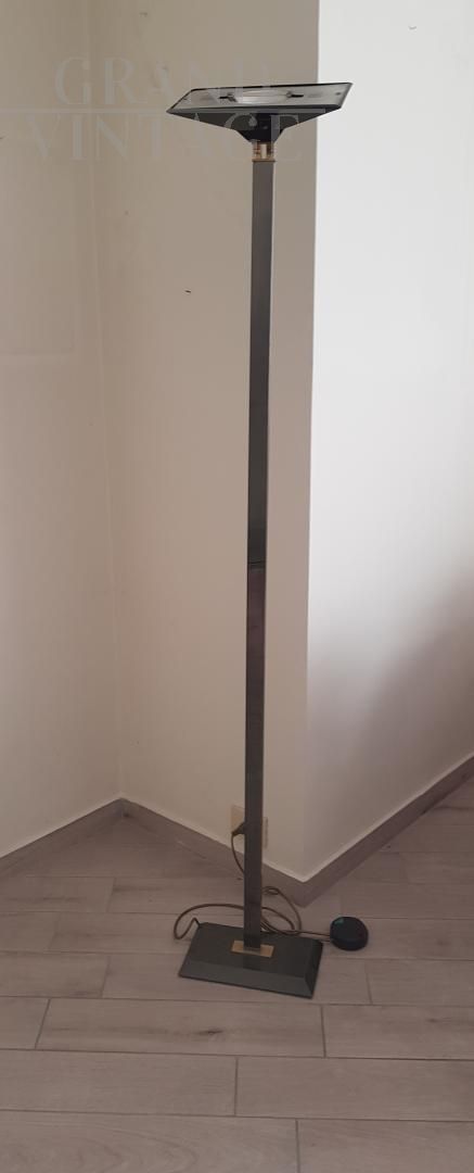 Lampada da terra piantana vintage Relco anni '80 in acciaio cromato con bellissimi inserti dorati, in buone condizioni, componenti elettriche funzionanti.