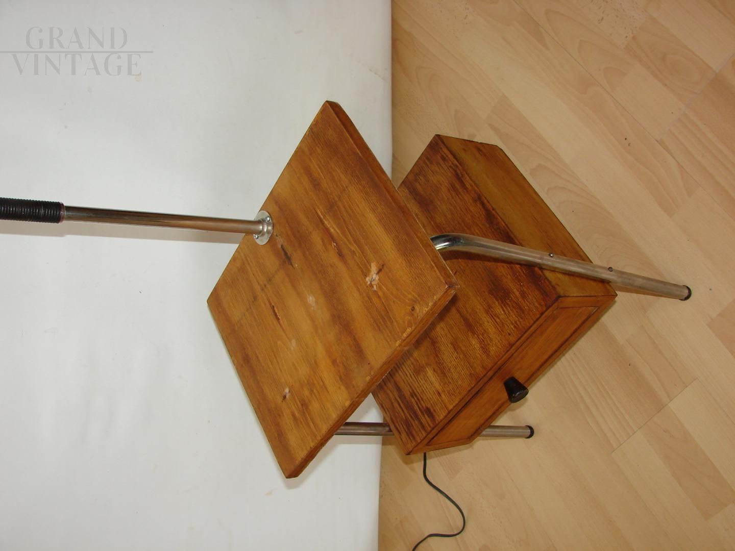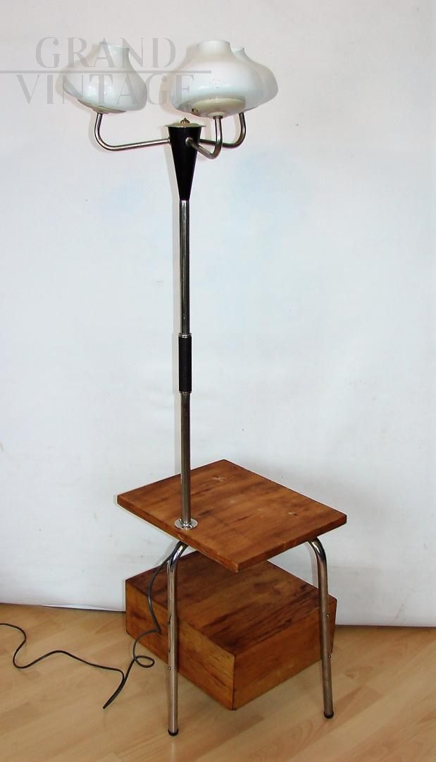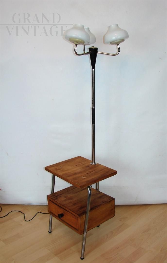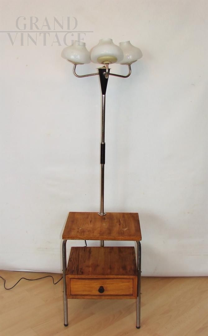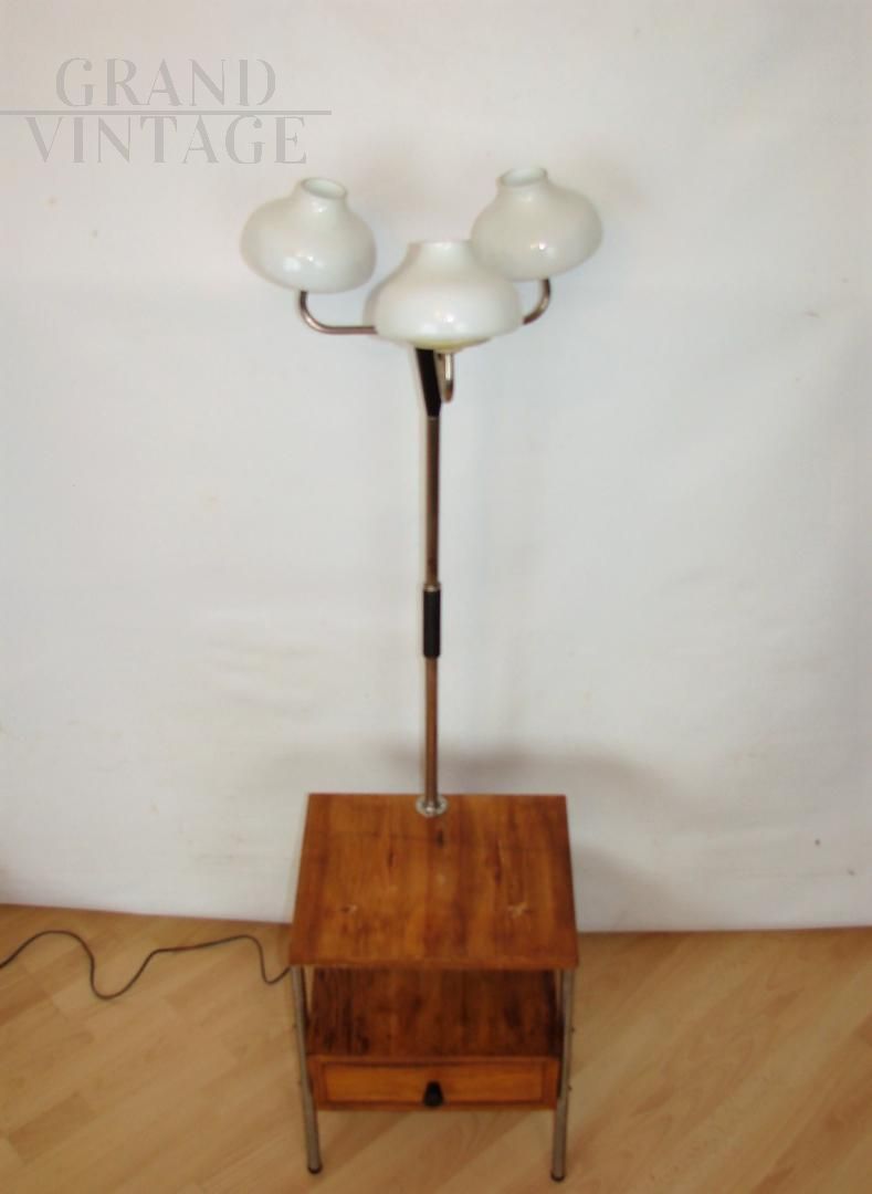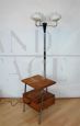 Piantana vintage a 3 luci con mobiletto in legno, Polonia anni '60