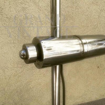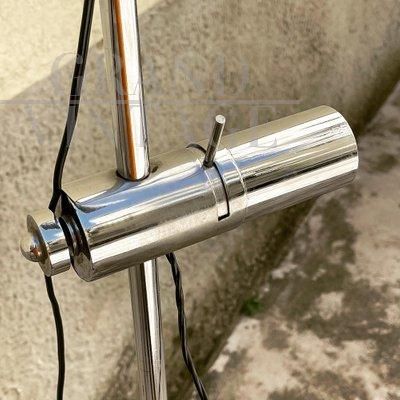 Lampada vintage a stelo in metallo cromato con due faretti con attacco a baionetta regolabili in altezza, Francia anni '70