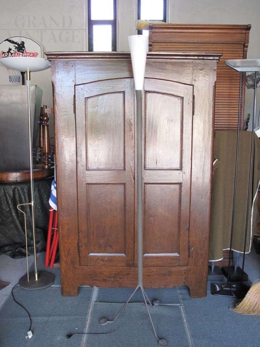 Piantana di design VeArt in vetro di Murano e metallo dipinto con una particolare base a tre piedi con pesi circolari alle estremità, Italia anni '90.