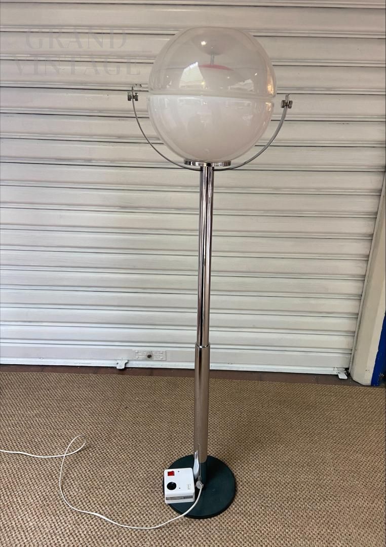 Lampada da terra piantana vintage in vetro di Murano con struttura in alluminio, Italia anni '70, con regolatore di intensità della luce.