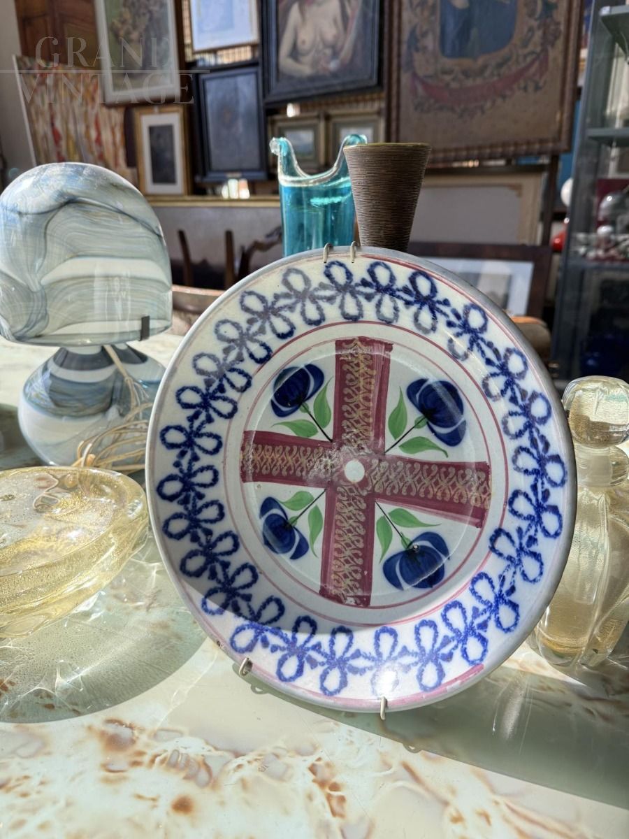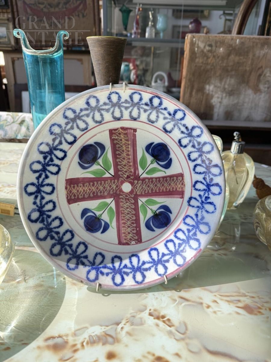 Piatto antico francese in maiolica con tulipani, XIX secolo