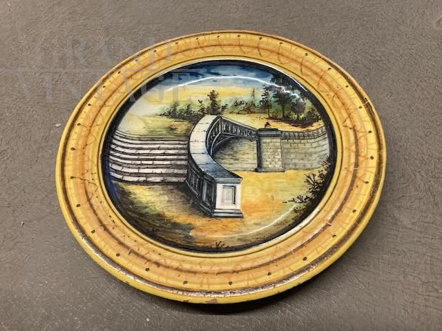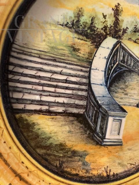 Piatto antico in ceramica Cantagalli con paesaggio, fine '800