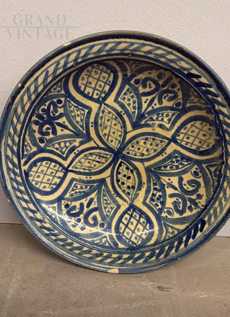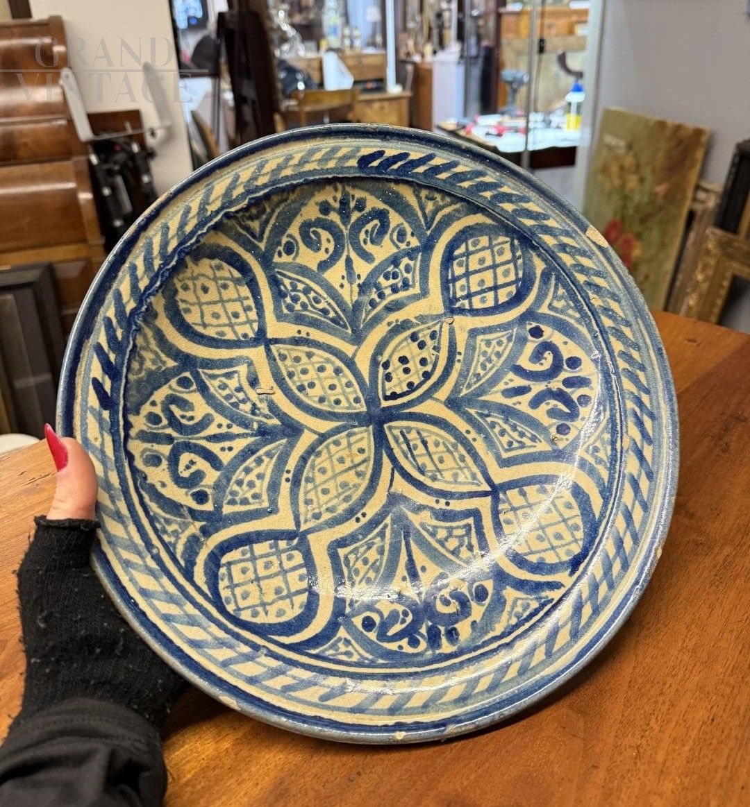 Piatto antico in maiolica dipinta, Marocco XIX secolo