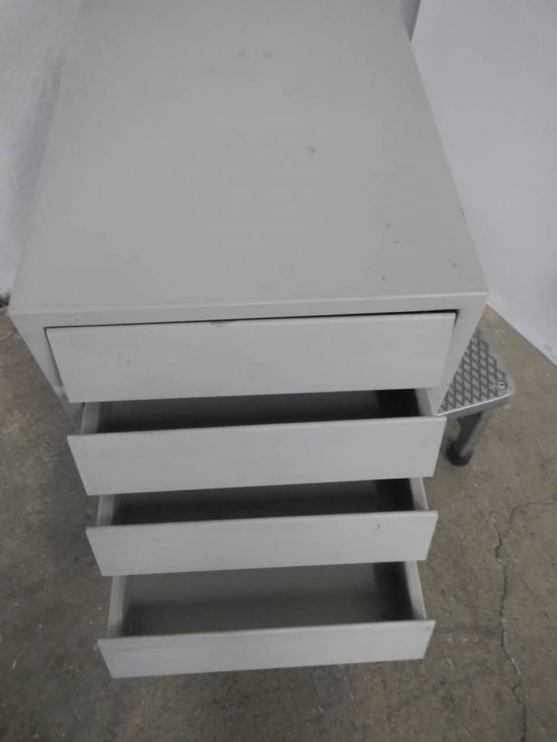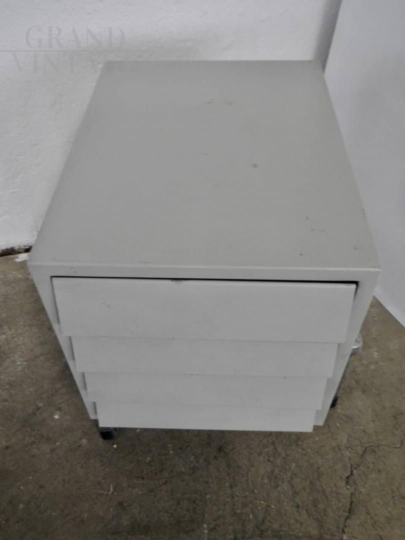Cassettiera vintage industriale anni '70 in metallo laccato grigio, con 4 cassetti.