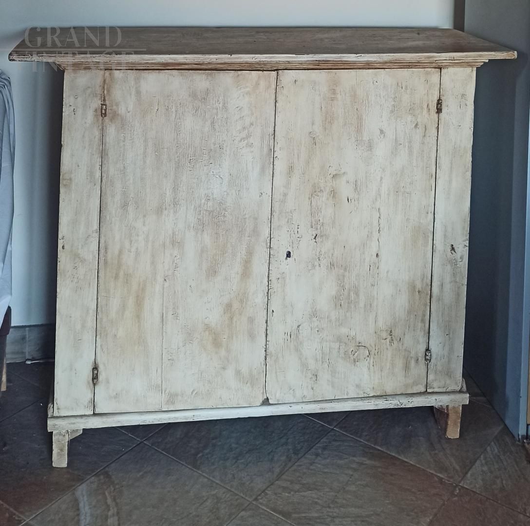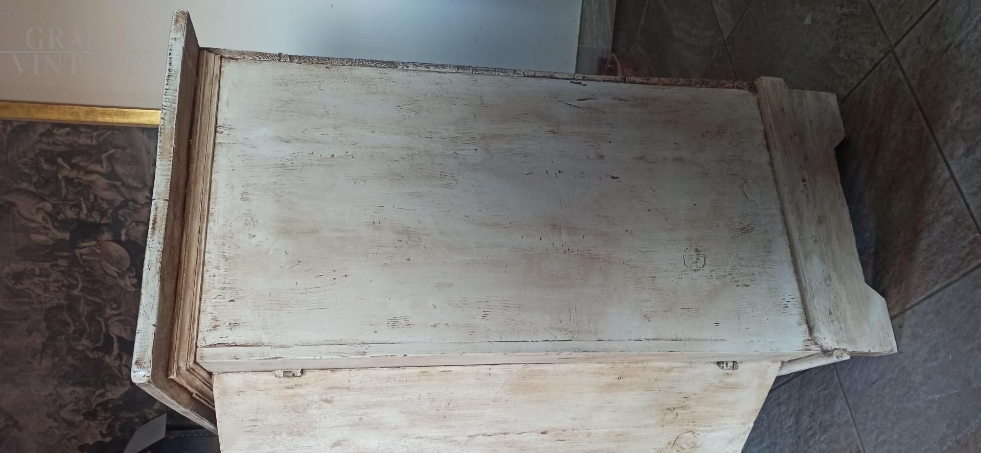Piccola credenza antica stile provenzale del XVIII secolo laccata color avorio.