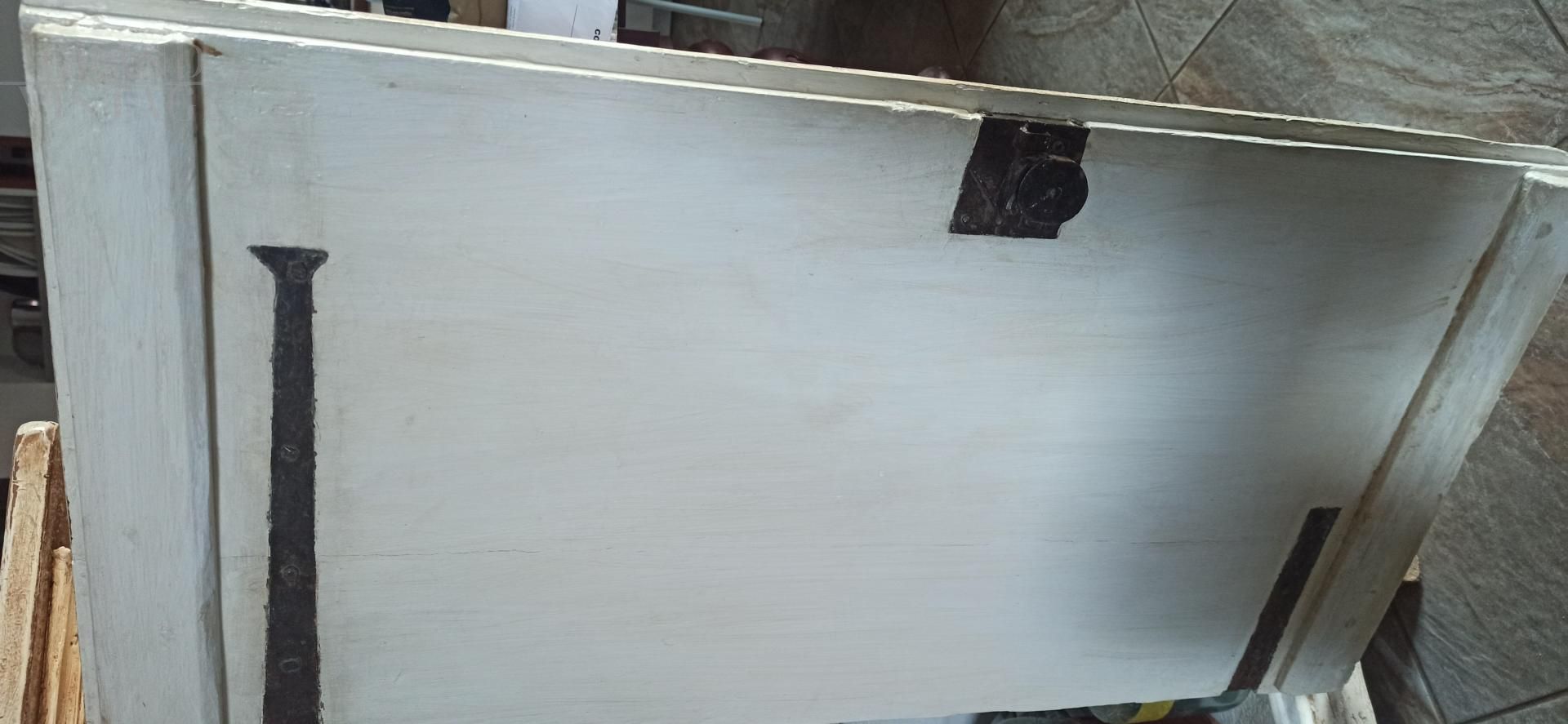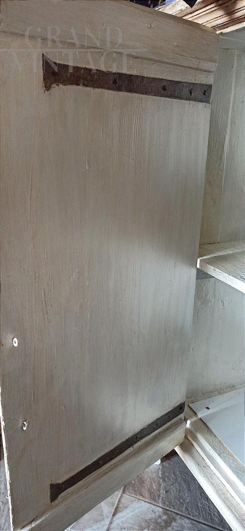 La credenzina è stata acquistata da una villa del Cinquecento di Genova, il mobile riporta le sue ante originali con la serratura antica e le sue cerniere in ferro battuto cesellate a mano. In origine il mobile era utilizzato come pensile, riadattato a credenza con un piano in pregiato legno di cipresso, legno che non si tarla e che è considerato un naturale repellente per diversi insetti.