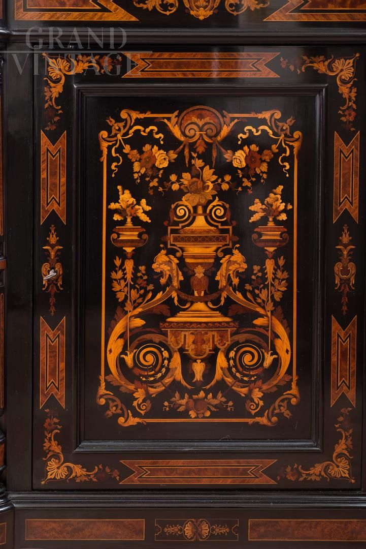 Piccola credenza antica Napoleone III intarsiata