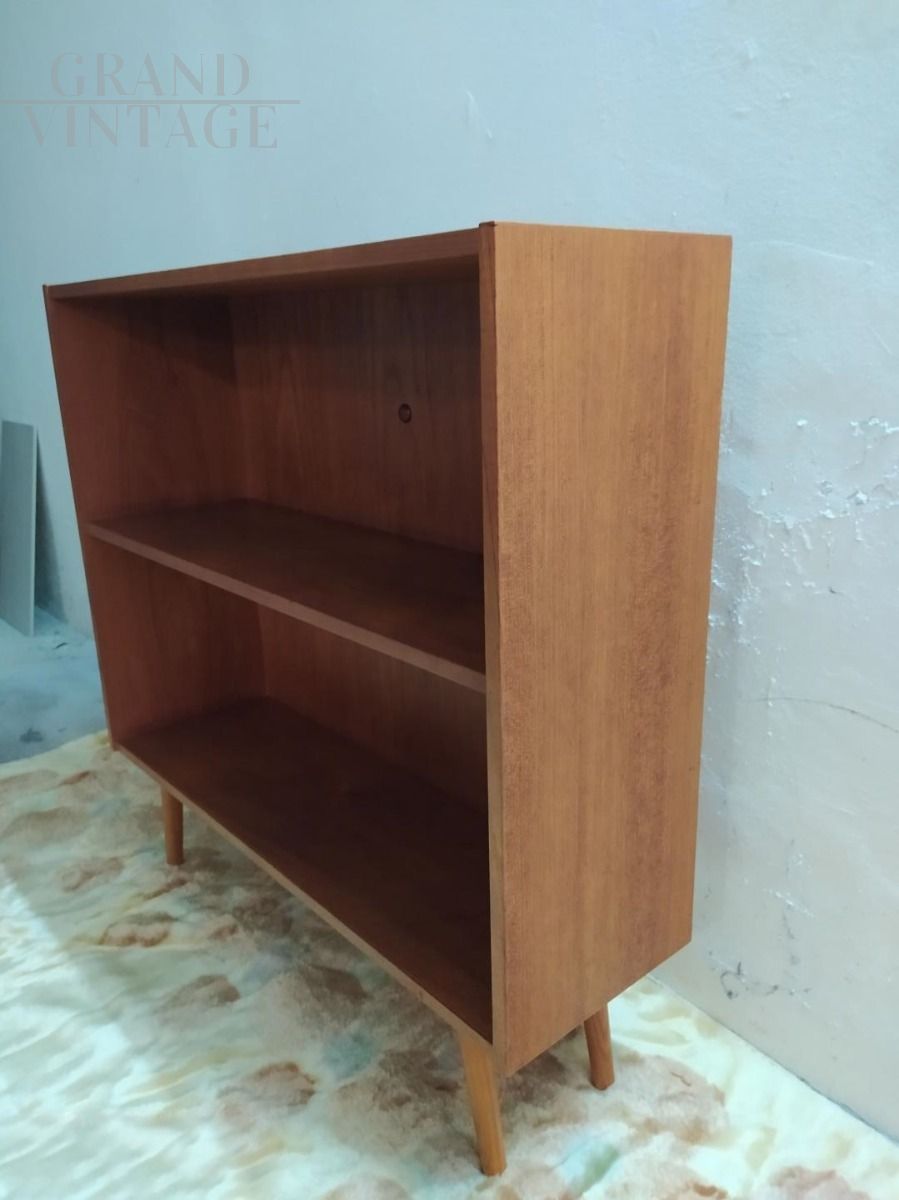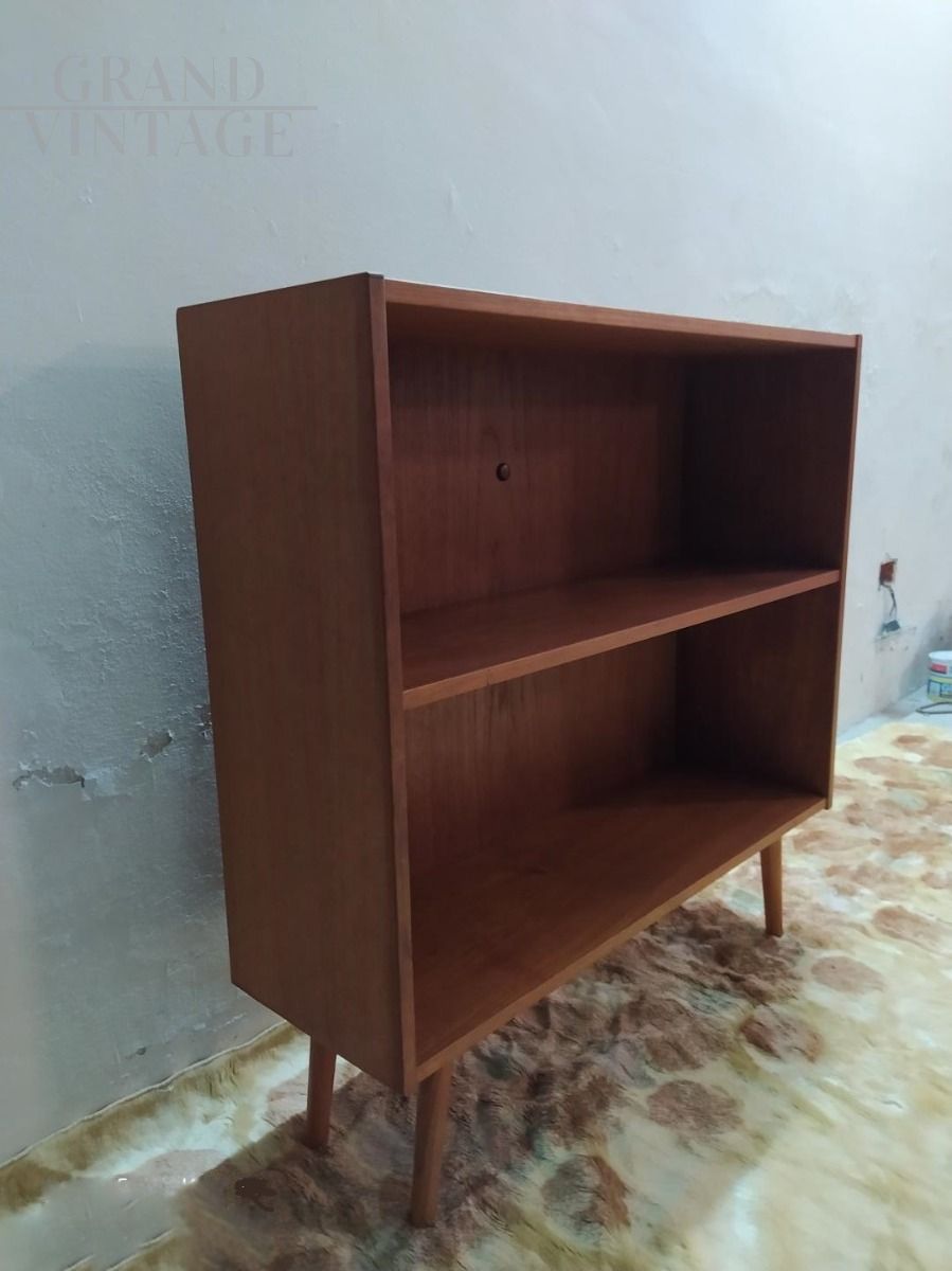 Libreria vintage danese anni 60 in legno di teak, perfetta anche come mobile tv vintage.