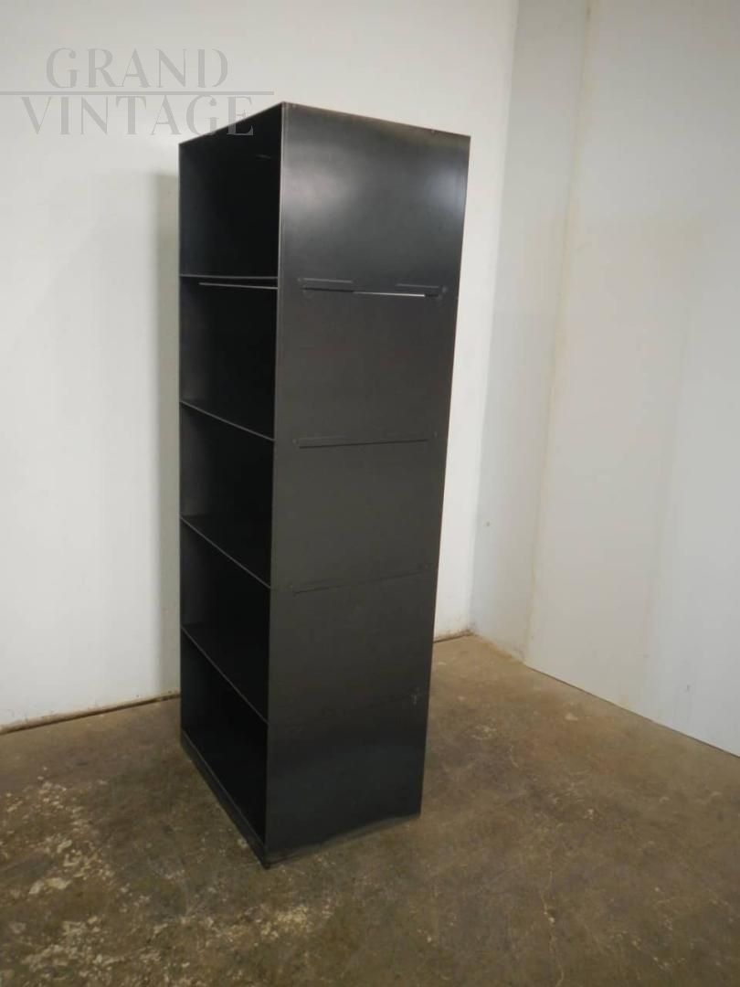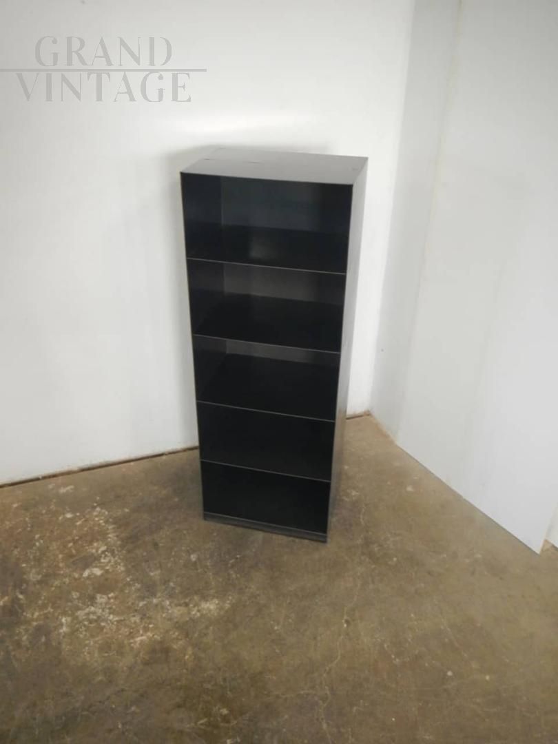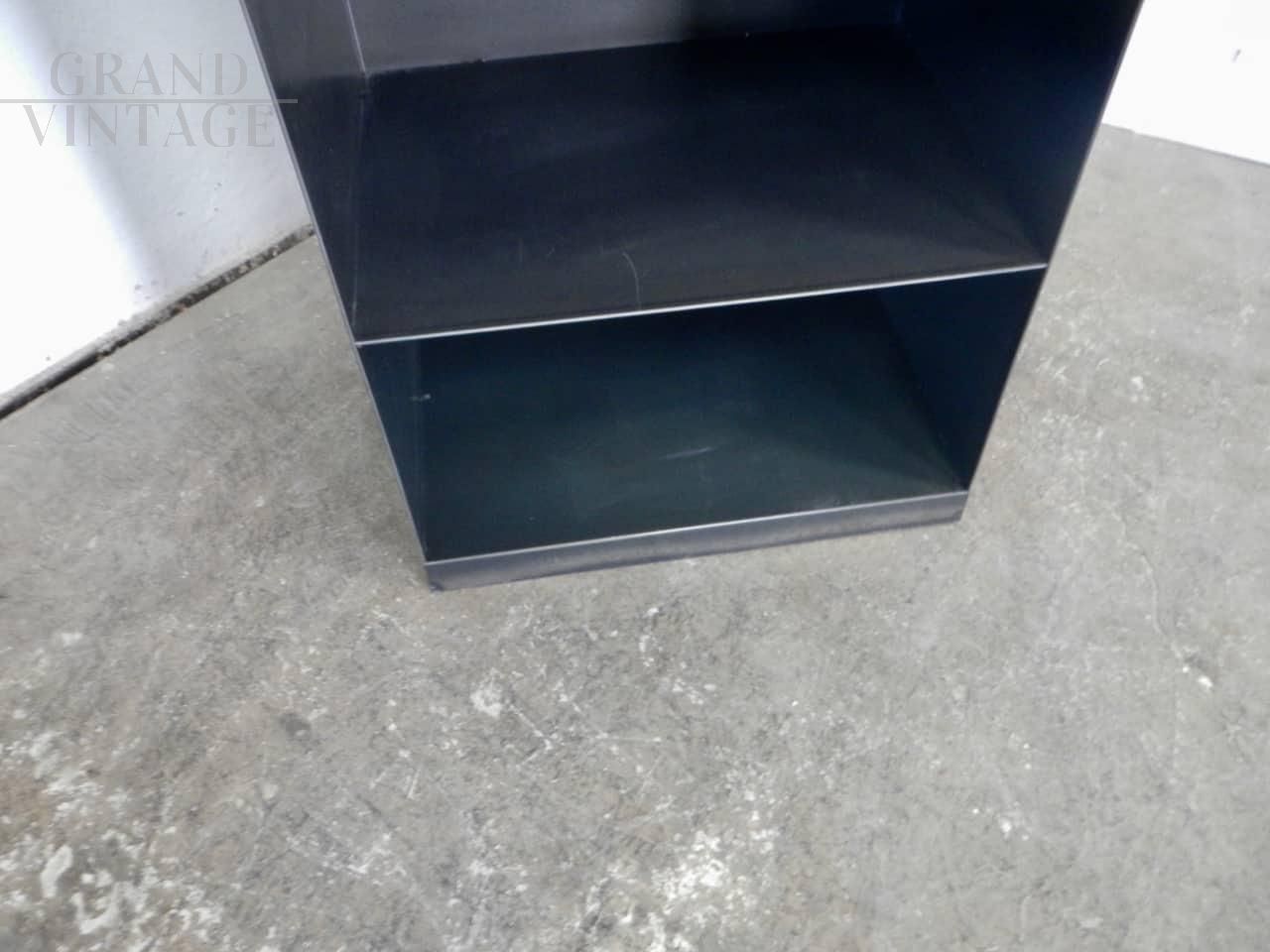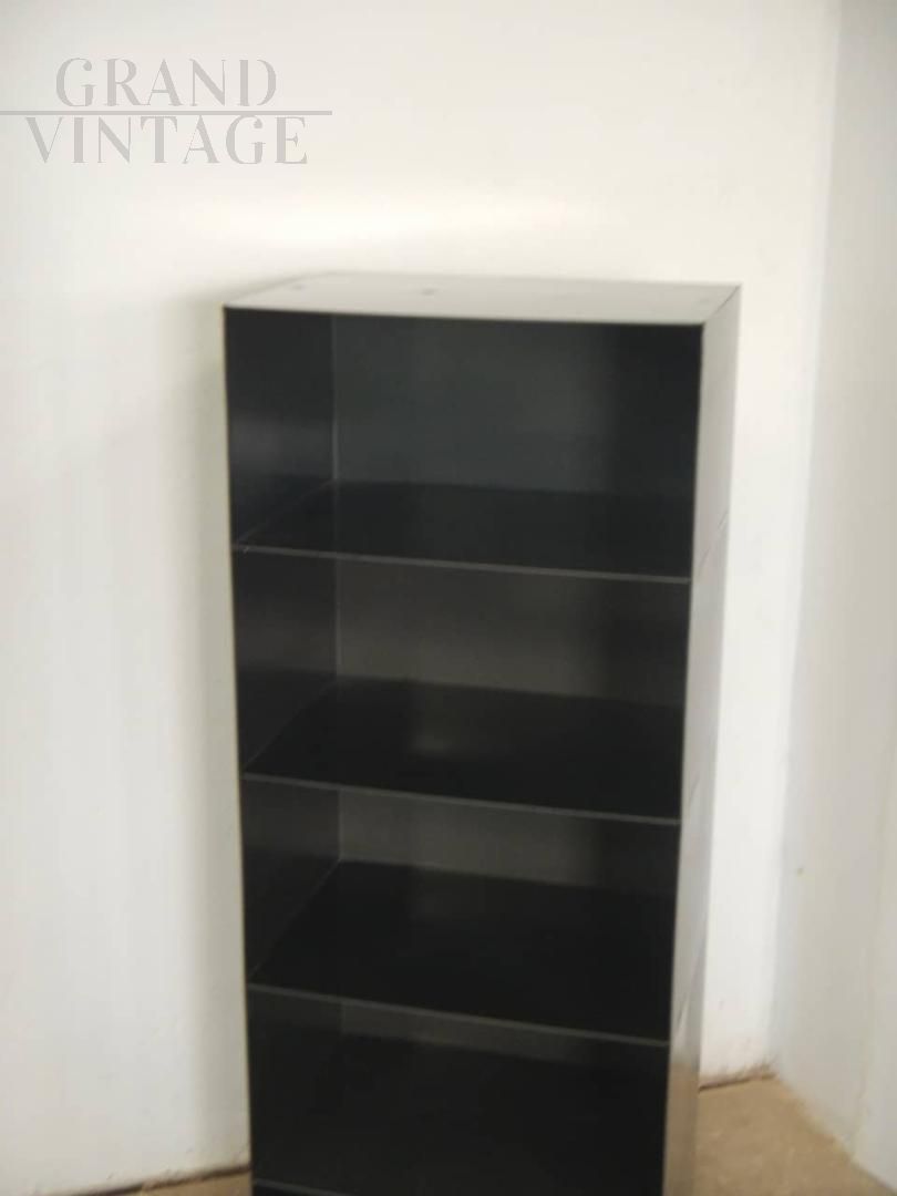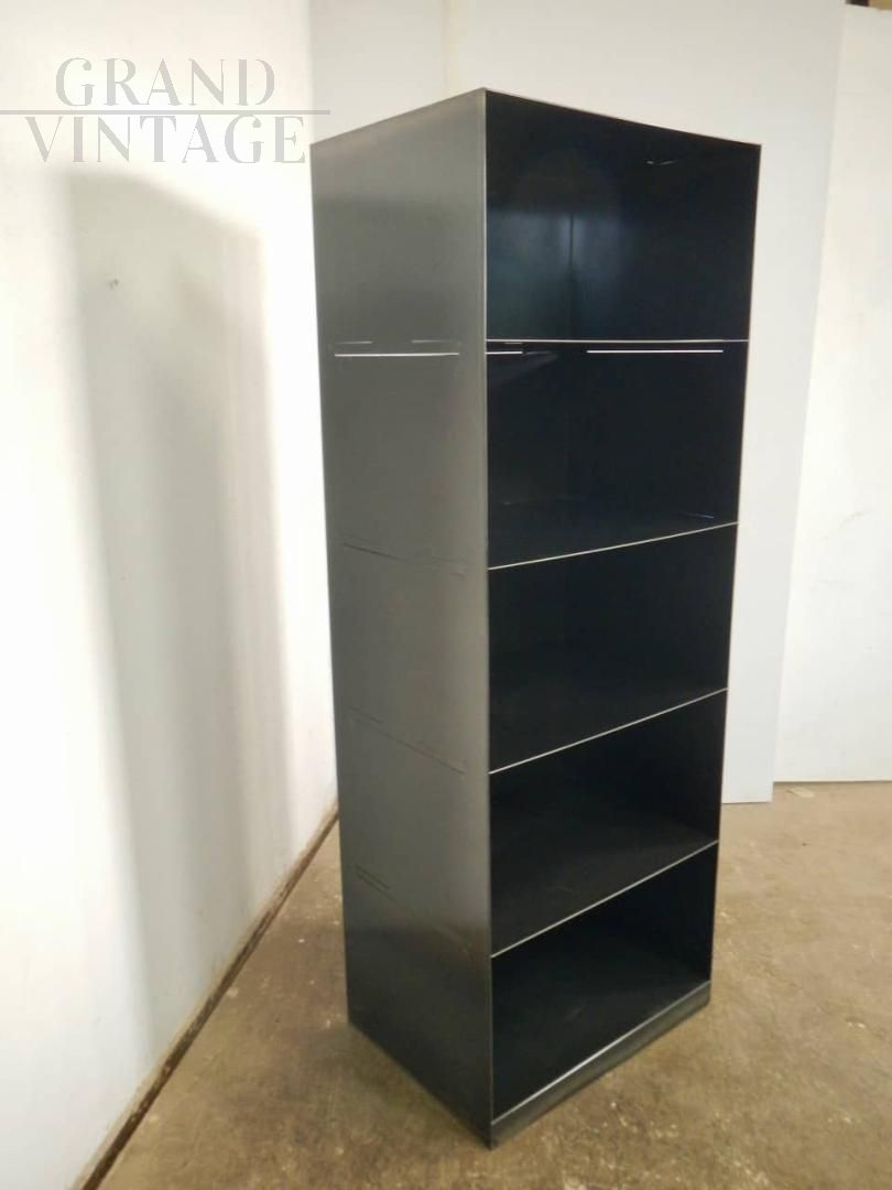 Piccola libreria a giorno in stile industriale in ferro nero con 4 mensole fisse. Lo spazio fra mensole è di cm 28 / 29. In buone condizioni. Disponibili 5 pezzi, il prezzo si riferisce al singolo pezzo.