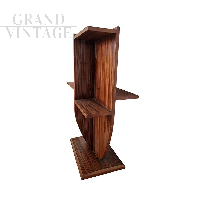 Piccola libreria portariviste verticale in stile Art Déco in legno di noce.