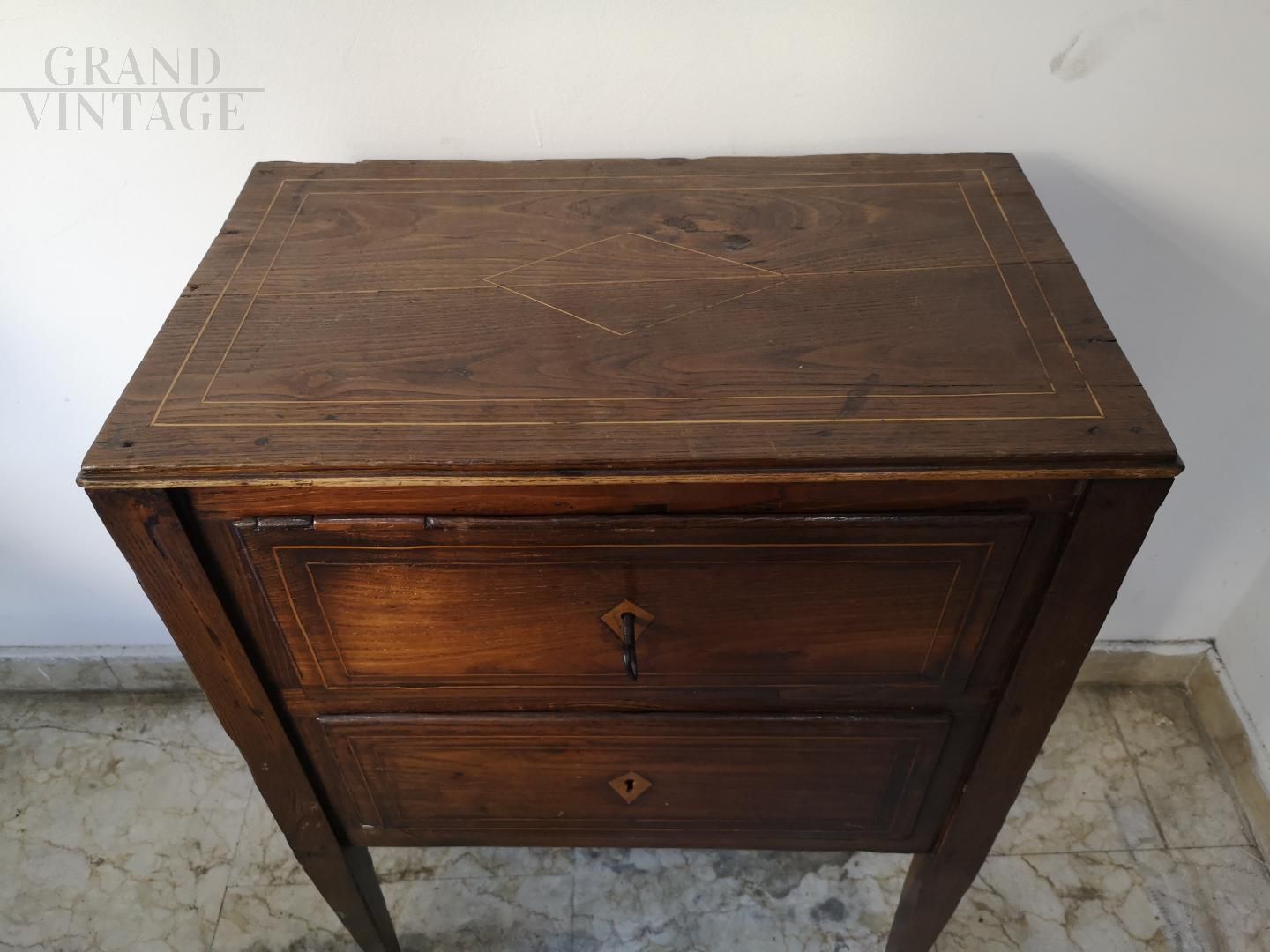 Piccolo comò comodino antico Luigi XVI in castagno di metà '700