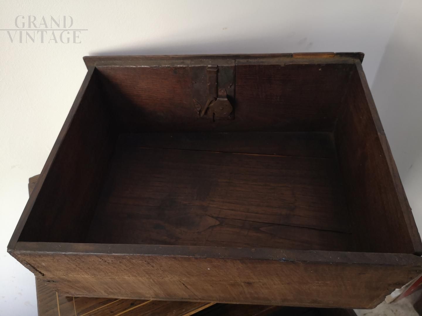 Cassettoncino piccolo mobiletto a cassetti antico di epoca Luigi XVI in legno scuro di castagno con due cassetti, metà '700, in buone condizioni.