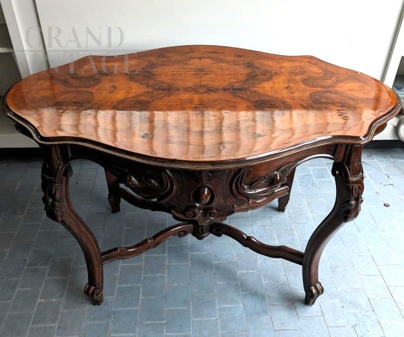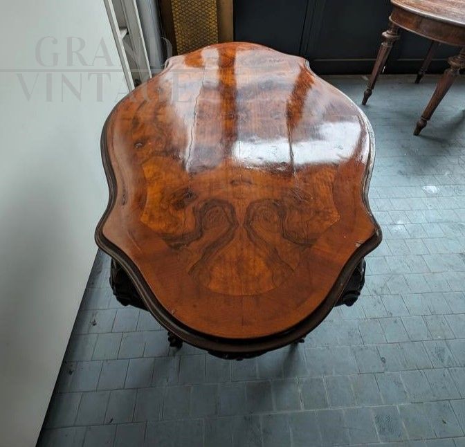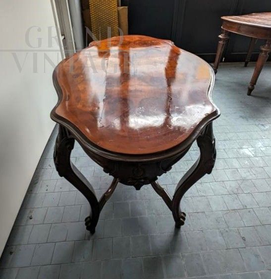 Piccolo tavolo antico a biscotto in noce intagliato primi '800