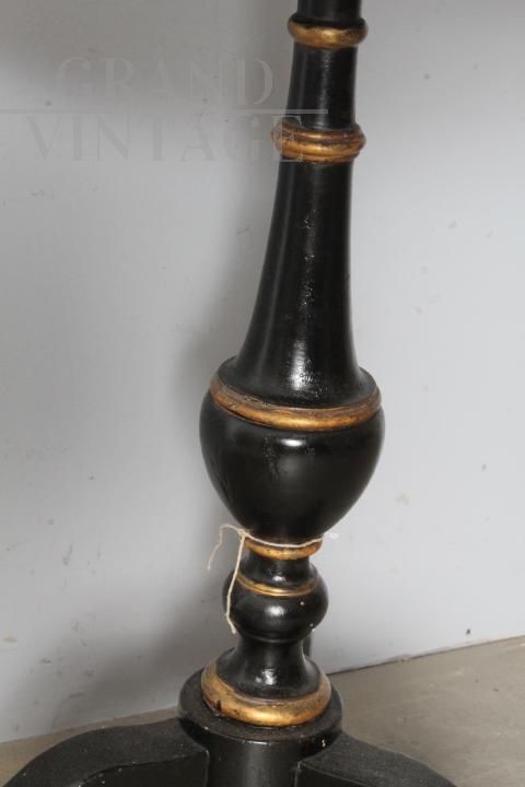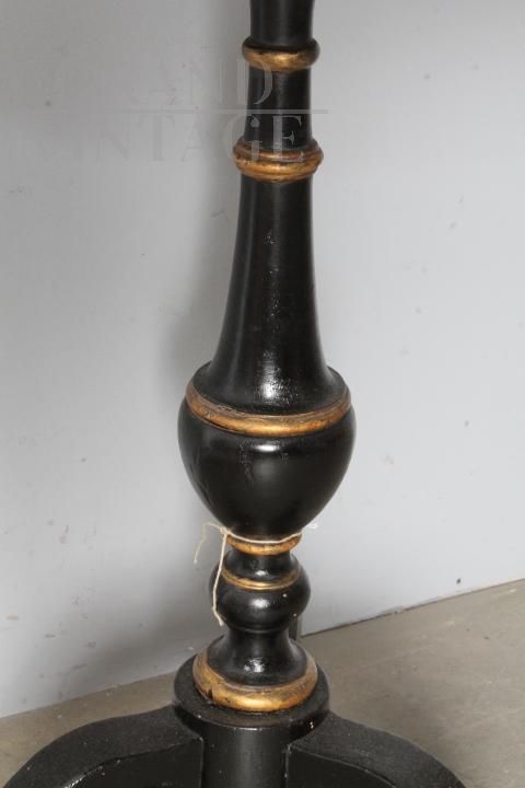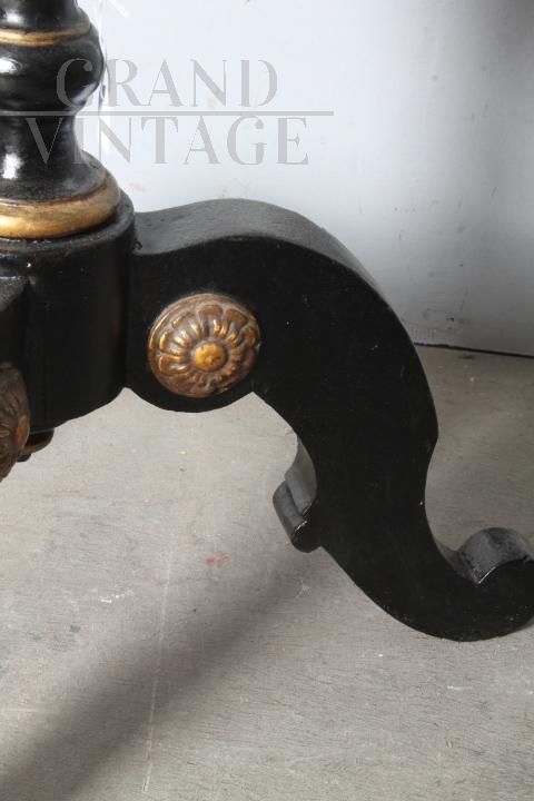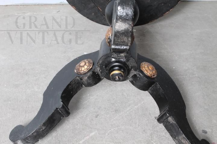 Piccolo tavolo rotondo antico toscano laccato nero con dettagli dorati, primi '800