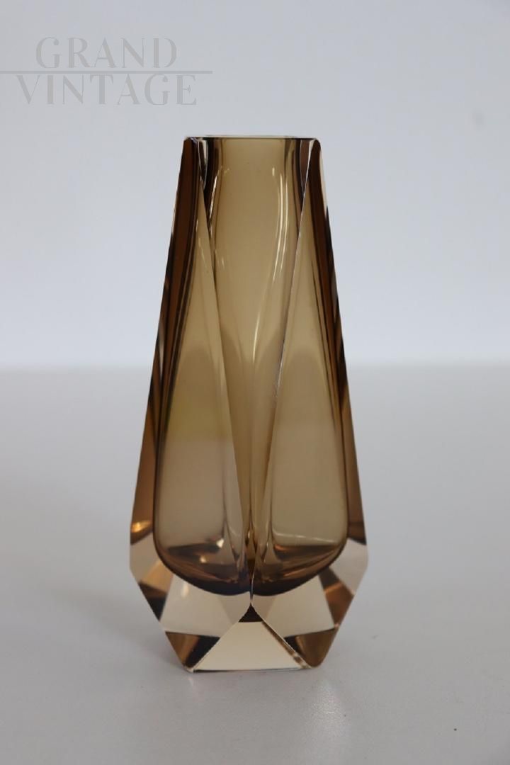 Piccolo vaso Mandruzzato in vetro di Murano sfaccettato color ambra, anni '60