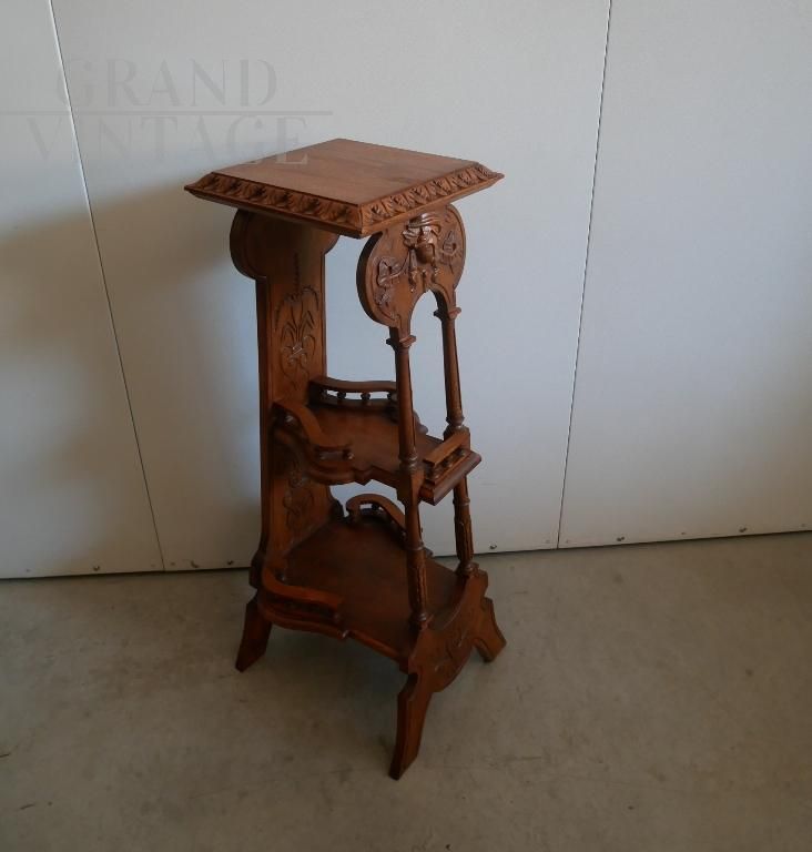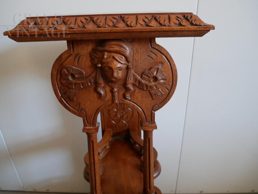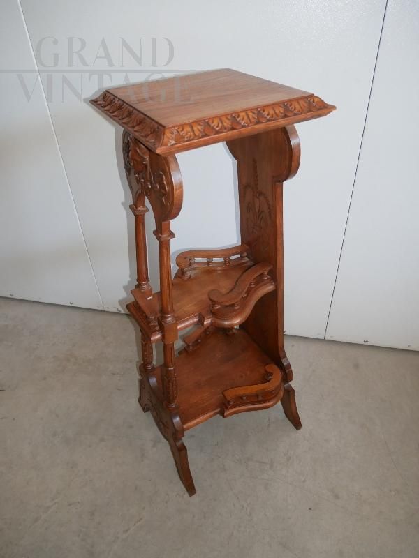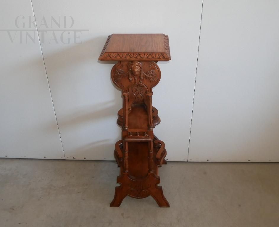 Piedistallo portavasi vintage in legno intagliato in stile eclettico