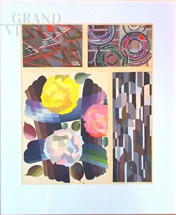 POCHOIR di EDUARD BENEDICTUS 1878/1930 "NOUVELLES VARIATIONS" Paris France 1924 Edouard Benedictus (1879 - 1930) Figura poliedrica dei primi anni del XX secolo, distintosi come pittore, scrittore, compositore e chimico. La sua carriera iniziò durante il fiorente periodo dell'Art Nouveau, un movimento che celebrava forme organiche e dettagli intricati. Benedictus contribuì a questo dialogo artistico con il suo articolo del 1912 su L'Art décoratif, che fu molto influente all'epoca. Tuttavia, la sua sensibilità artistica si evolse in risposta alle mutevoli estetiche degli anni '10, abbracciando l'emergente stile Art Déco che avrebbe dominato il design negli anni '20. Benedictus divenne famoso per i suoi lussuosi portfolio, in particolare Variations (1923) e Nouvelles Variations (1928).
