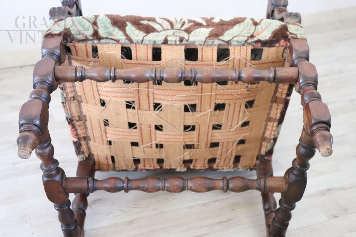 Poltrona antica a trono in noce dei primi del XVIII secolo