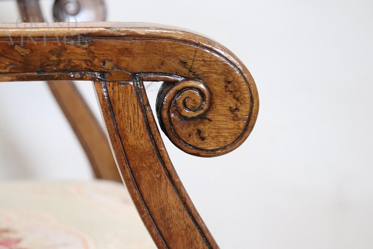 Poltrona antica di epoca Luigi XVI in noce, XVIII secolo
