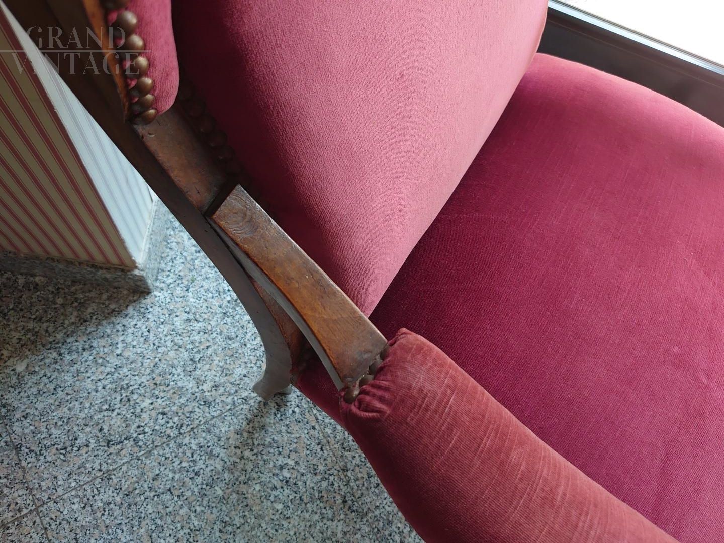Poltrona antica metà '800 in velluto rosa