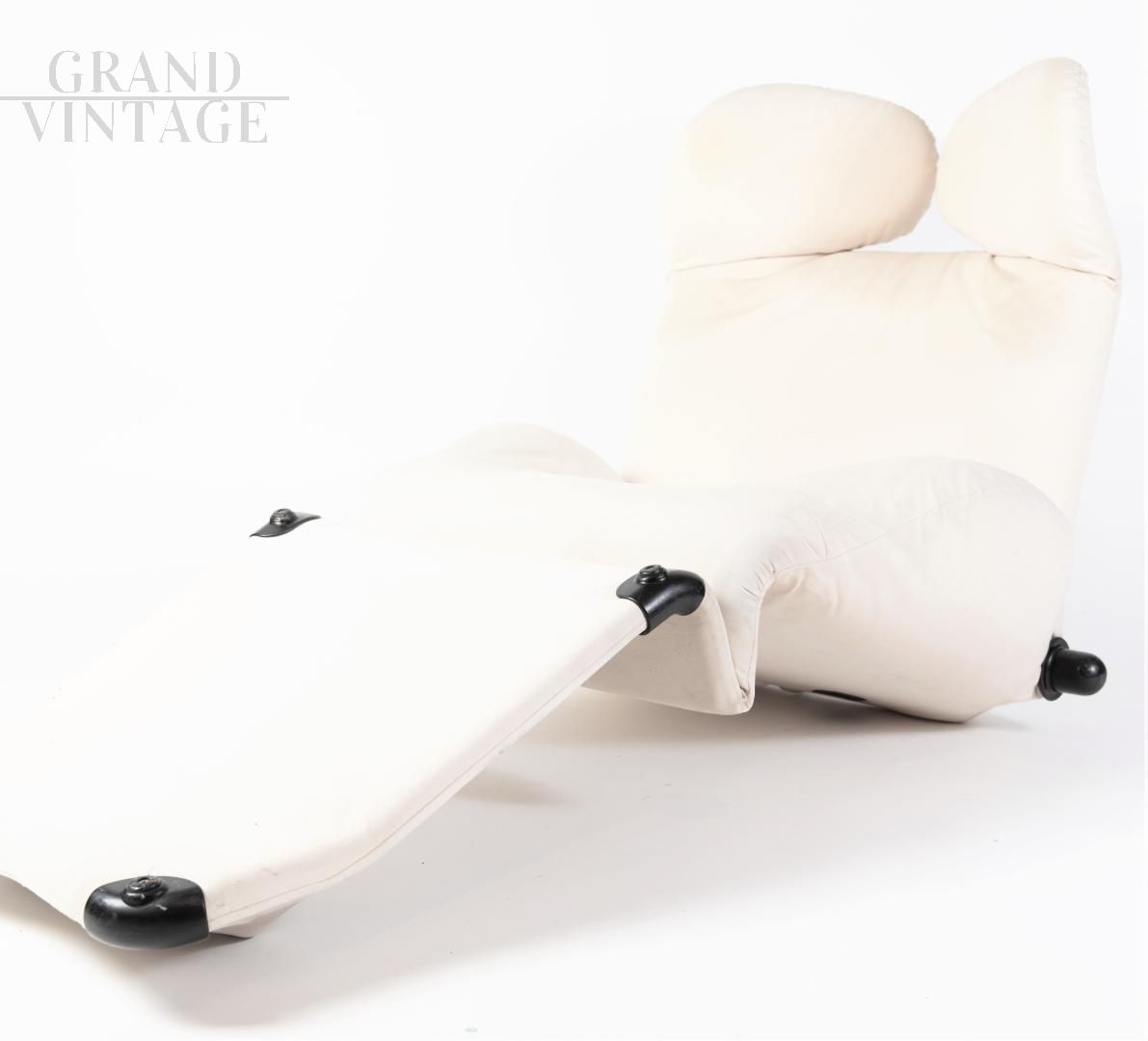 Poltrona chaise longue Wink modello 111 di Toshiyuki Kita per Cassina, rivestita con tessuto bianco originale sfoderabile e lavabile.