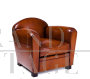 Poltrona club stile classico in pelle di montone marrone dalle forme tonde