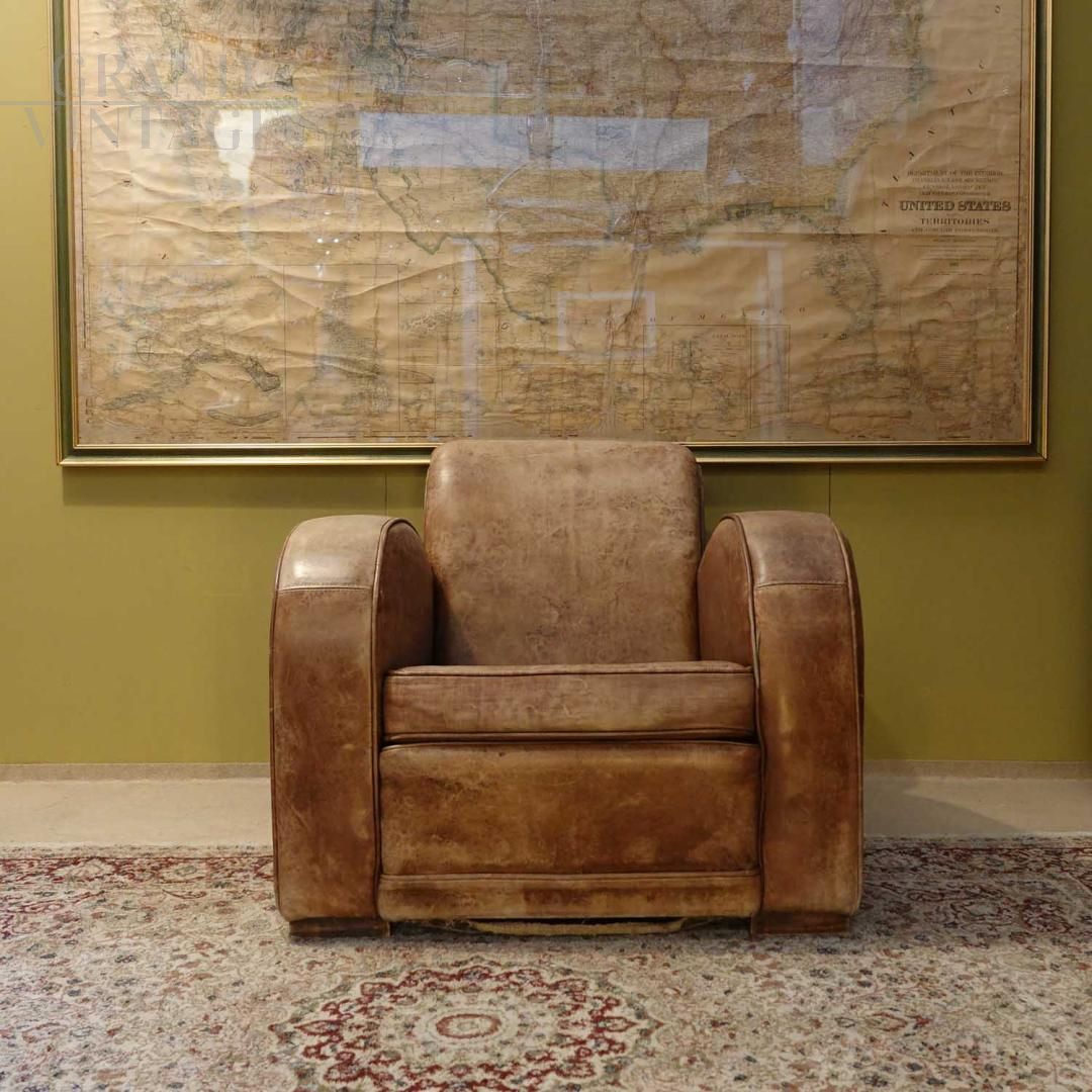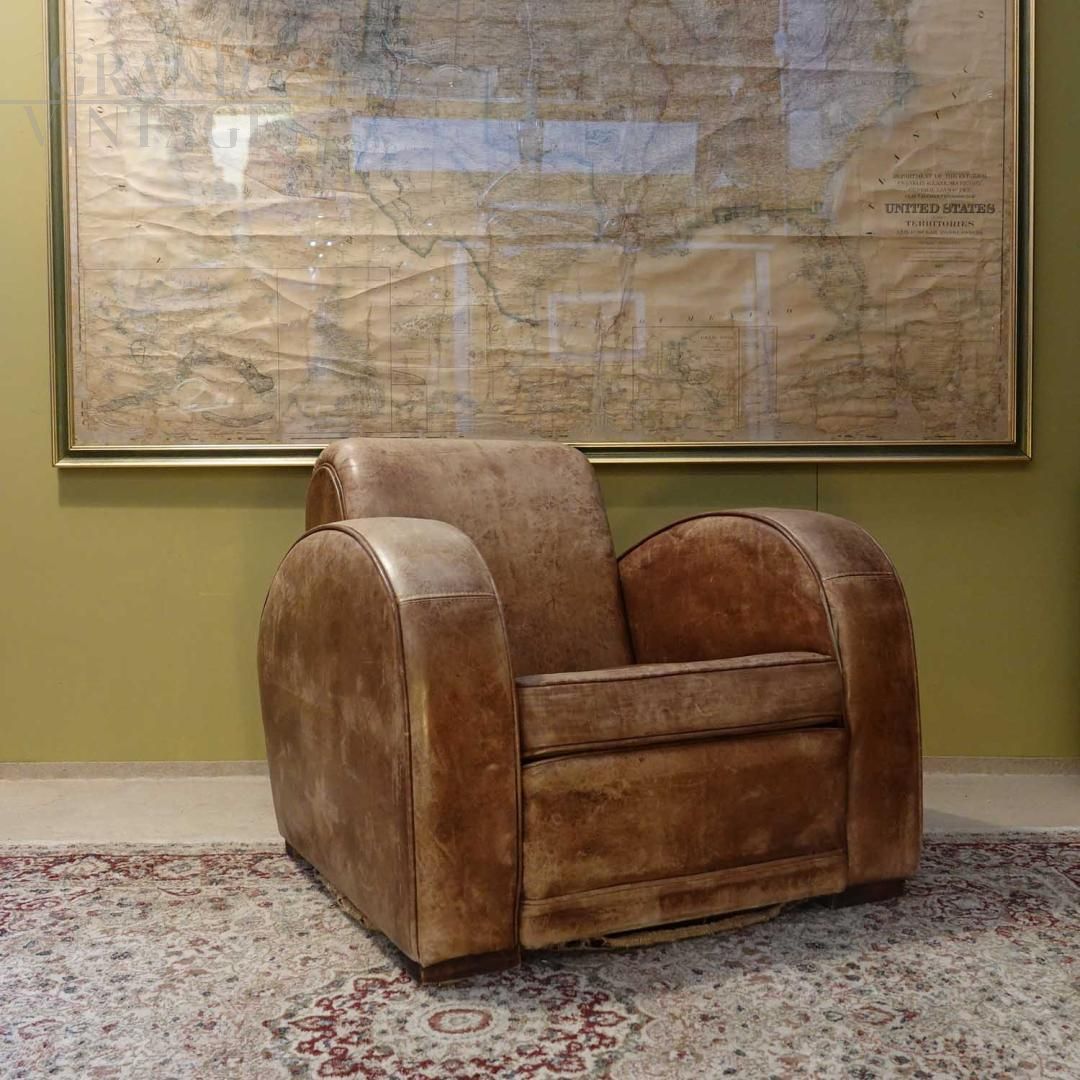 Poltrona club vintage in pelle marrone