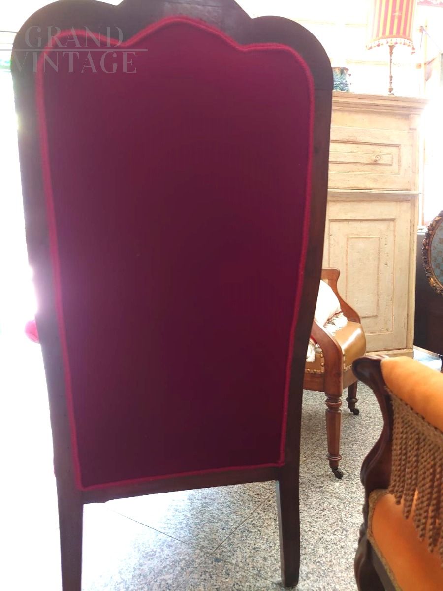 Poltrona d'epoca primi '800 in velluto bordeaux e stoffa