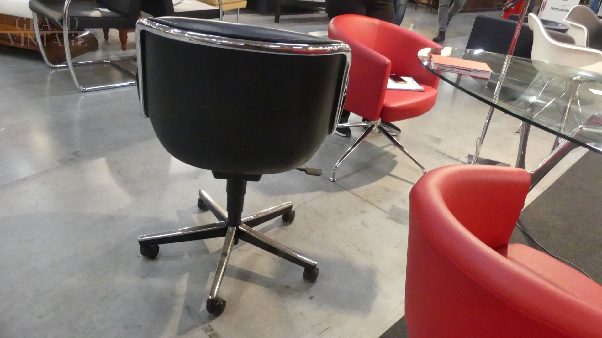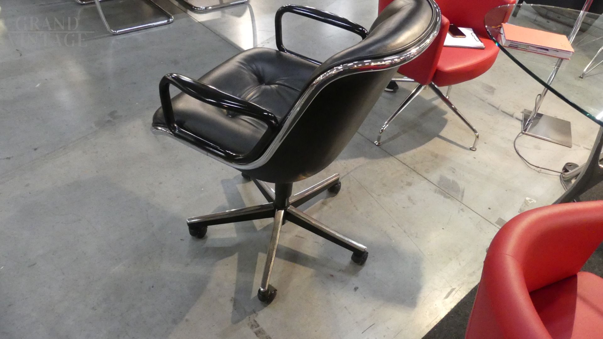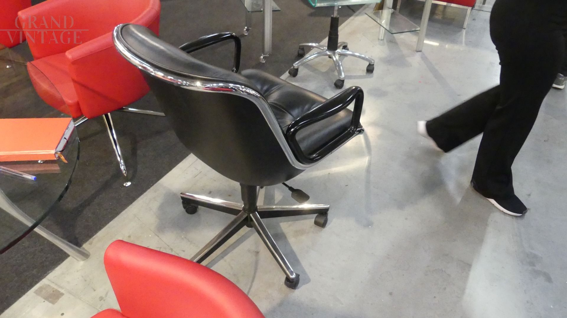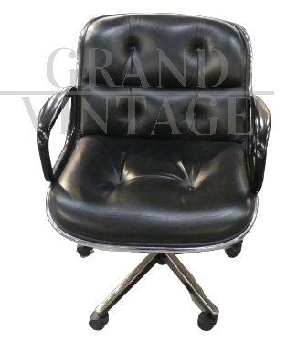 Poltrona da ufficio Pollock di Knoll in pelle nera